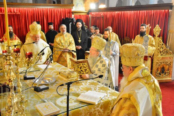 Σήμερα, 23η Φεβρουαρίου 2020, Κυριακὴ τῆς Ἀπόκρεῳ, πραγματοποιήθηκε ἀρχιερατικὸ συλλείτουργο στὸν ἱερὸ προσκυνηματικὸ Ναὸ τοῦ ἁγίου Δημητρίου, Πολιούχου τῆς Θεσσαλονίκης. Κατὰ τὴν ἀκολουθία τοῦ Ὄρθρου χοροστάτησε ὁ Σεβ. Μητροπολίτης Θηβῶν καὶ Λεβαδείας κ. Γεώργιος, ἐνῷ τῆς Ἀρχιερατικῆς Θείας Λειτουργίας προέστη ὁ Παναγ. Μητροπολίτης Θεσσαλονίκης κ. Ἄνθιμος, συλλειτουργούντων τῶν Σεβ. Μητροπολιτῶν, Θηβῶν καὶ Λεβαδείας κ. Γεωργίου καὶ, Φιλίππων, Νεαπόλεως καὶ Θάσου κ. Στεφάνου.