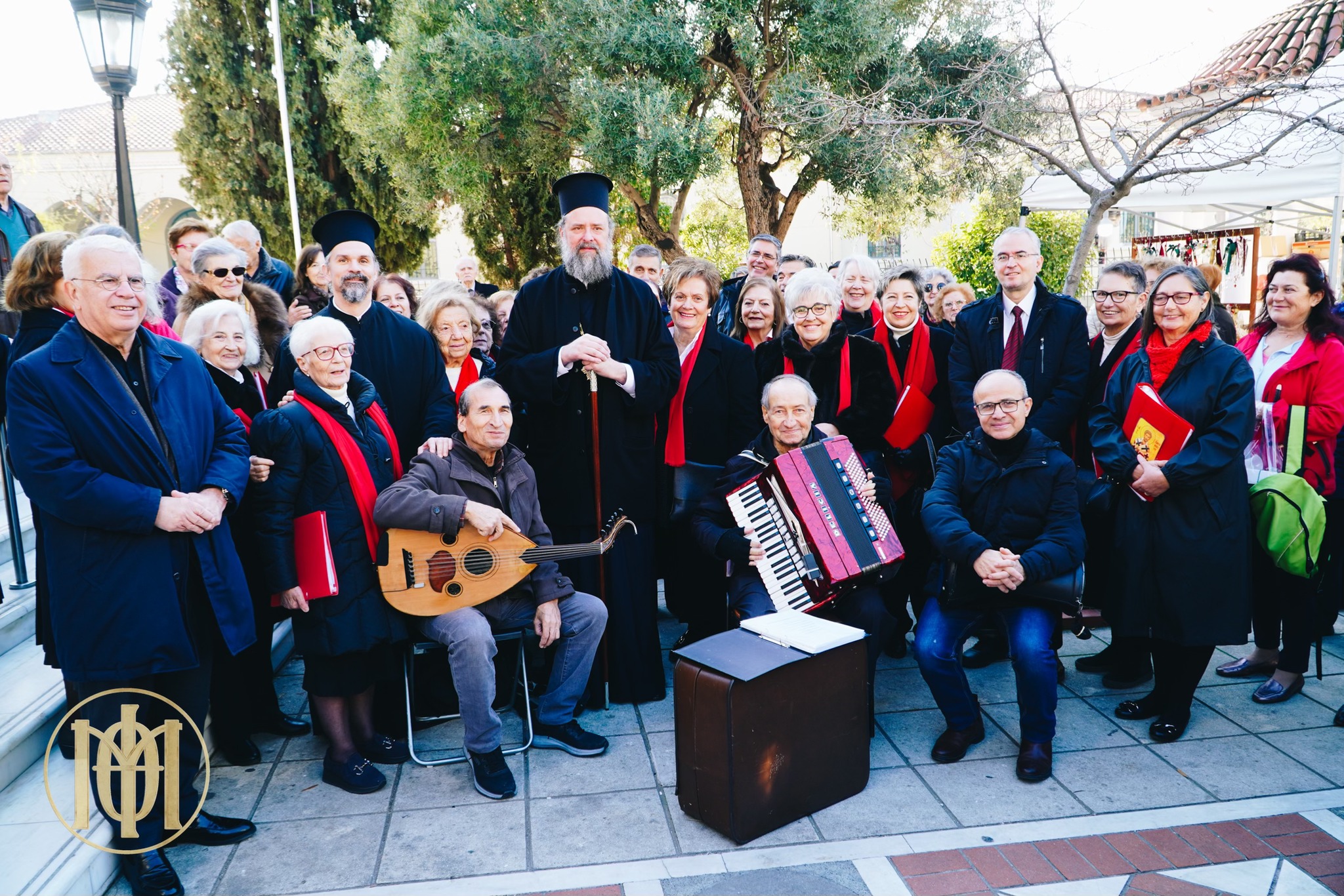 Στον αύλειο χώρο του Ιερού Ναού η γυναικεία χορωδία της Ενορίας υπό τη διεύθυνση του χοράρχη κ. Ευαγγέλου Ασημίνα παρουσίασε στον Ποιμενάρχη μας και στους πιστούς που βρέθηκαν εκεί χριστουγεννιάτικα τραγούδια και κάλαντα του Αγίου Δωδεκαημέρου.