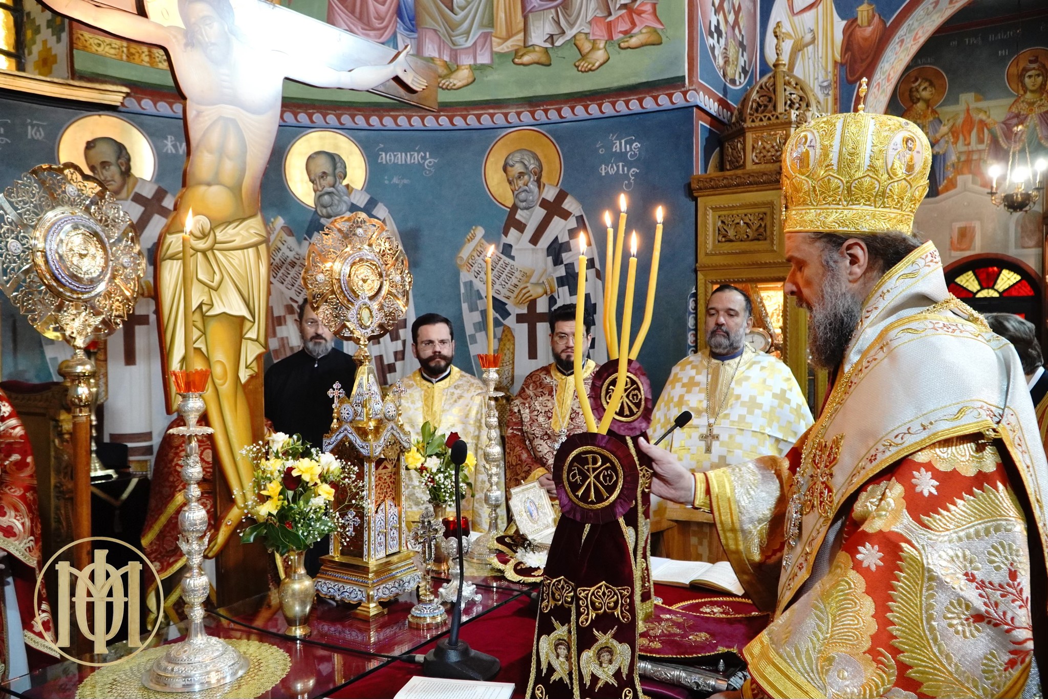 Στο Ιερό Βήμα παρέστησαν συμπροσευχόμενοι οι Σεβασμιώτατοι Μητροπολίτες Βρυούλων κ. Παντελεήμων και Βελεστίνου κ. Δαμασκηνός.
