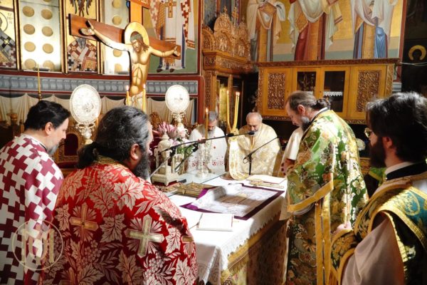Κατά το ιερό κήρυγμα αναφέρθηκε στον βίο του αγίου Ευθυμίου και προ της απολύσεως ευχήθηκε και στον εορτάζοντα ιερατικό προϊστάμενο του Ιερού Ναού, πανοσιολογιώτατο αρχιμ. π. Ευθύμιο Βακαλάκη.