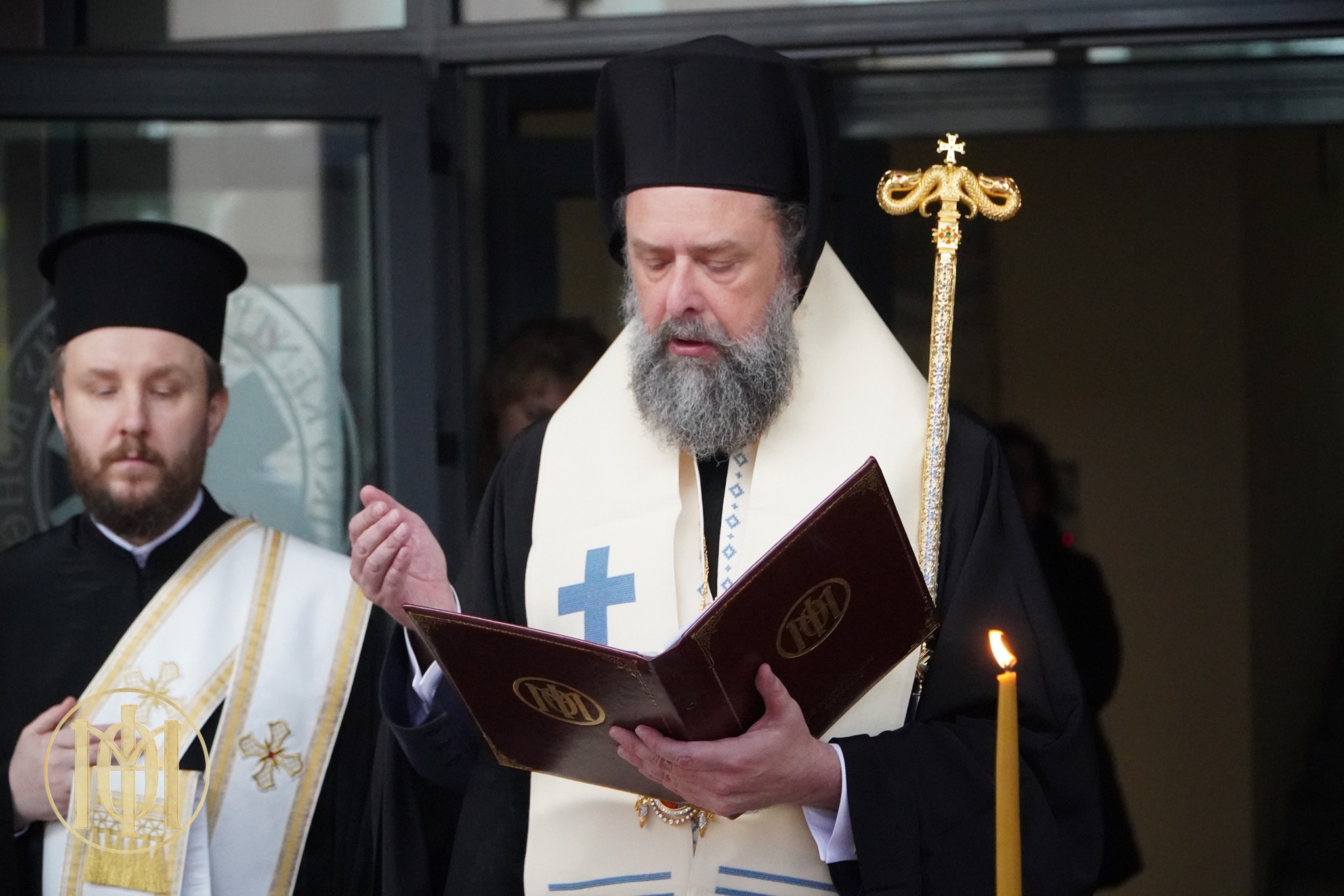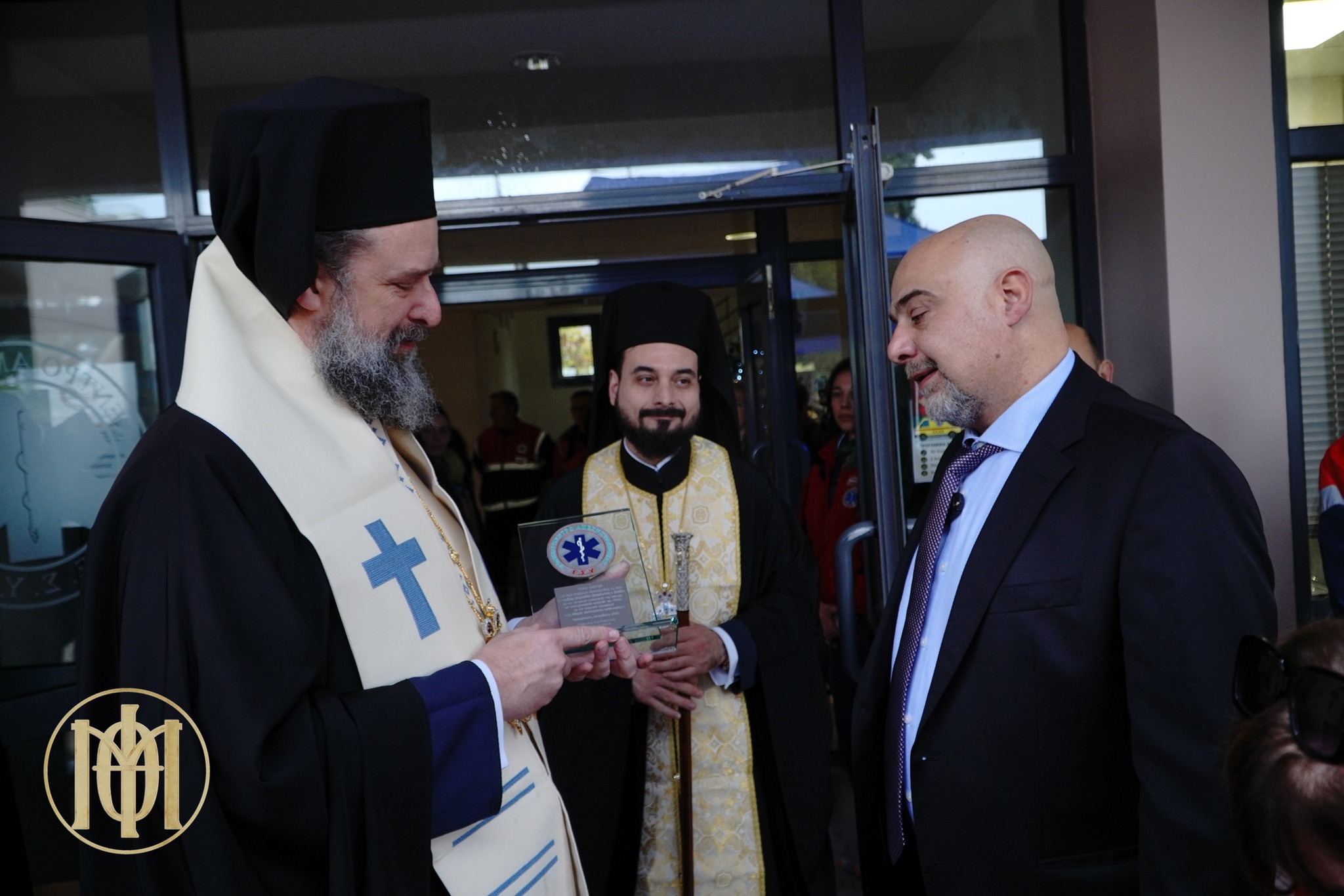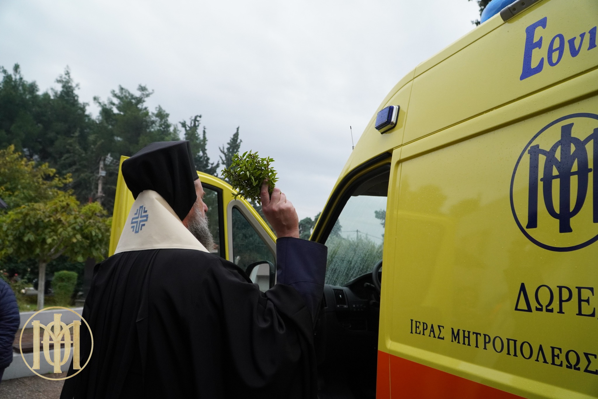 Πριν από την παράδοση τελέσθηκε από τον Επίσκοπό μας ο Αγιασμός παρουσία του Διευθυντή του Ε.Κ.Α.Β. Θεσσαλονίκης κ. Δημητρίου Κουρτίδη, της Διευθύντριας – Συντονίστριας ΚΕΠΥ-ΕΚΑΒ Βορείου Ελλάδος κ. Γεωργίας Λεπτοκαρίδου – Λακασά, των εργαζομένων, των διασωστών, των εκπαιδευομένων και κληρικών της τοπικής Εκκλησίας.