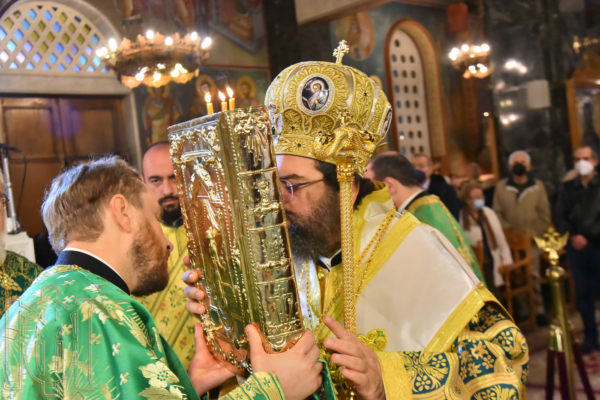 Ο Σεβασμιώτατος κατά την διάρκεια της εμπνευσμένης ομιλίας του, αναφέρθηκε στο μεγάλο γεγονός των Εισοδίων της Κυρίας Θεοτόκου εις τα Άγια των Αγίων για την Εκκλησία μας αλλά και για την μεγάλη ευλάβεια και αγάπη που πρέπει να τρέφουμε οι χριστιανοί προς το πρόσωπό της καθώς η Υπεραγία Θεοτόκος κατέστη εκείνη η οποία δέχθηκε στα σπλάχνα της, τον λυτρωτή μας, Κύριο ημών Ιησού Χριστό.