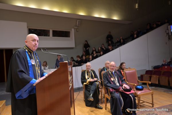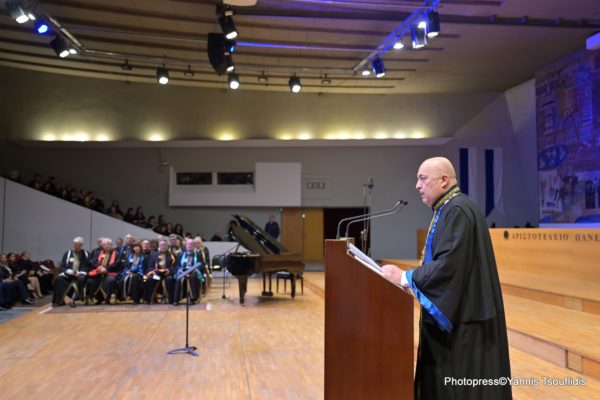 «Σήμερα, καλούμαστε να αναζητήσουμε τον βηματισμό μας σε ένα ραγδαία μεταβαλλόμενο περιβάλλον της ανώτατης εκπαίδευσης στην Ελλάδα και διεθνώς, με διαρκείς ανακατατάξεις και σημαντικές προκλήσεις», ανέφερε επιπλέον και επισήμανε «Η οικονομική και κοινωνική ανάπτυξη της χώρας μας συνδέθηκε άμεσα με την μαζική πρόσβαση στην ανώτατη εκπαίδευση που εξασφάλισαν από ιδρύσεως του ελληνικού κράτους τα δημόσια πανεπιστήμια. Είναι αυτά που έχουν την ωριμότητα, την τεχνογνωσία και διαθέτουν στις τάξεις τους τους κατάλληλους ανθρώπους προκειμένου να εξελιχθούν σε μητροπολιτικά κέντρα γνώσης και έρευνας, εντός και εκτός συνόρων. Αυτό το όραμα αρμόζει σε ένα σύγχρονο κράτος με ιστορία δύο αιώνων και σε ένα ίδρυμα, όπως είναι το Αριστοτέλειο Πανεπιστήμιο Θεσσαλονίκης».