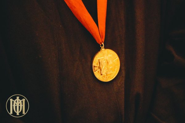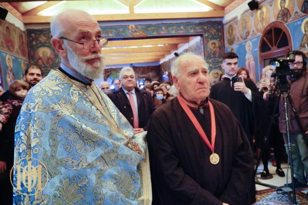 Προ της απολύσεως, ο Μητροπολίτης, απένειμε το χρυσό μετάλλιο του Αγίου Φιλοθέου, Αρχιεπισκόπου Θεσσαλονίκης, καθώς και τιμητική πλακέτα εκ μέρους του Εκκλησιαστικού Συμβουλίου, στον επί πεντηκονταετία ιεροψάλτη του ναού κ. Γεώργιο Μπερμπερίδη.