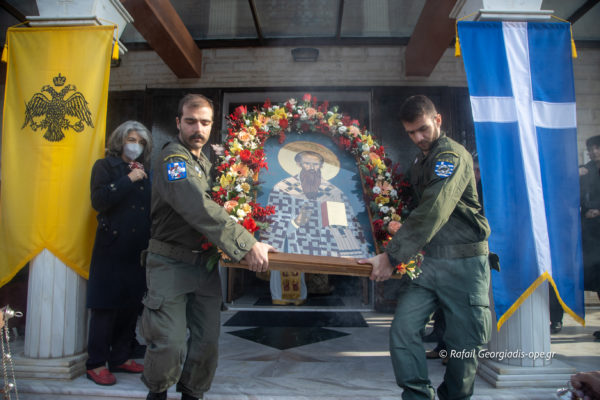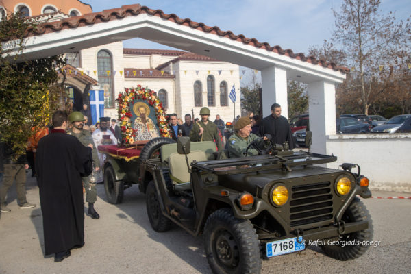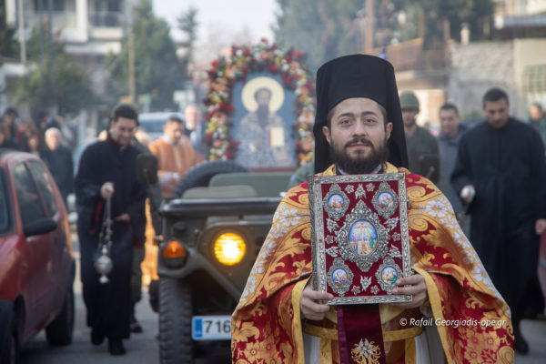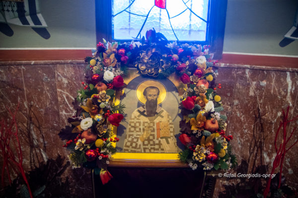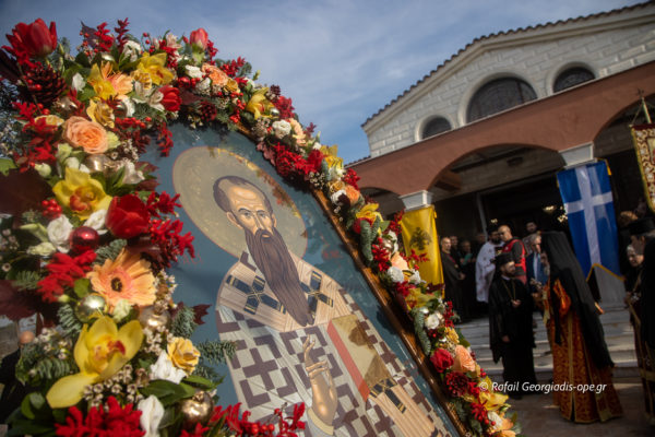 Ακολούθως τελέστηκε η Δοξολογία για το Νέο Έτος όπου ευλογήθηκε η βασιλόπιτα και συνέχεια πραγματοποιήθηκε η περιφορά της Ιεράς Εικόνος μαζί με το λείψανο του Αγίου στους κεντρικούς δρόμους της περιοχής.