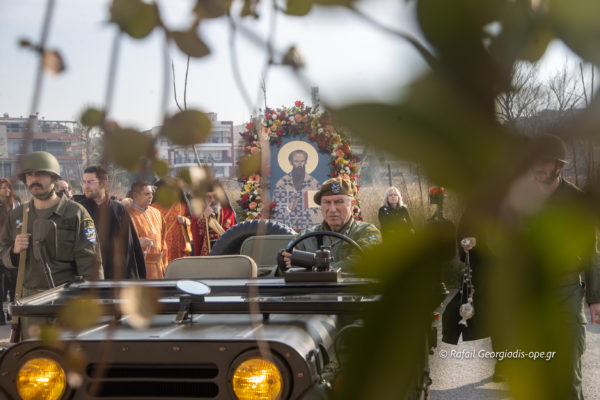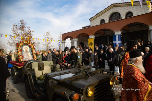 Η λιτάνευση της ιεράς εικόνος στους δρόμους της Νέας Ελβετίας πραγματοποιήθηκε με όχημα από τον Σύλλογο Ιστορικών Στρατιωτικών Οχημάτων. Προπορευόταν του οχήματος ο Ερυθρός Σταυρός και η φιλαρμονική μπάντα του Παπάφειου Ιδρύματος παιάνιζε σε όλη την λιτανεία ύμνους.