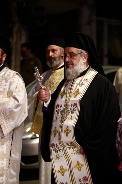 Της ακολουθίας του Εσπερινού προεξήρχε ο Αρχιμ. Ιάκωβος Αθανασίου, Πρωτοσύγκελλος της Μητροπόλεως, πλαισιούμενος από τον Γενικό Αρχιερατικό Επίτροπο Αρχιμ. Φώτιο Ζαρζαβατσάκη τον Προϊστάμενο του Ναού Αρχιμ. Γρηγόριο Παπούλα καθώς και από τους Ιερείς και τους Ιεροδιακόνους της Ι. Μητροπόλεως.