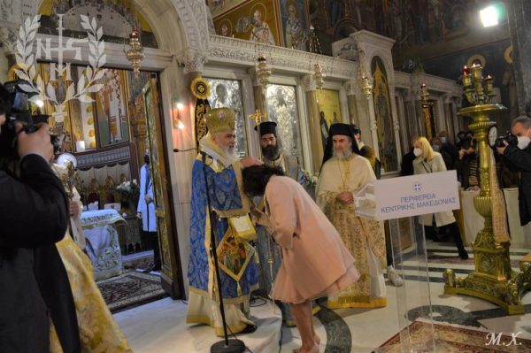 Στη Πανηγυρική Θεία Λειτουργία παρέστησαν ο Υφυπουργός Εσωτερικών (Μακεδονίας– Θράκης) κ. Σταύρος Καλαφάτης, ο Περιφερειάρχης Κεντρικής Μακεδονίας κ. Απόστολος Τζιτζικώστας, η Αντιπεριφερειάρχης κ. Βούλα Πατουλίδου, η οποία εκφώνησε τον πανηγυρικό της ημέρας τιμώντας τις Ένοπλες Δυνάμεις, ο Δήμαρχος Θεσσαλονίκης κ. Κωνσταντίνος Ζέρβας, ο Διοικητής του Γ΄ Σώματος Στρατού κ. Αναστάσιος Σπανός και πολλοί βουλευτές και πολιτικοί.