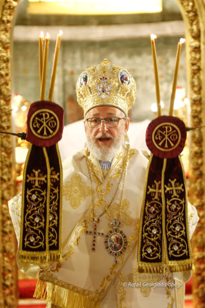 Τον Θεοφιλέστατο πλαισίωσαν οι ιερείς του Ναού: Αρχιμανδρίτης Ειρηναίος Βογιατζής, Πρωτοπρεσβύτερος Παλαιολόγος Μάνος, Πρωτοπ. Νικόλαος Ζουγκανάρου και ιεροδιάκονοι.