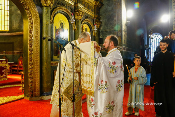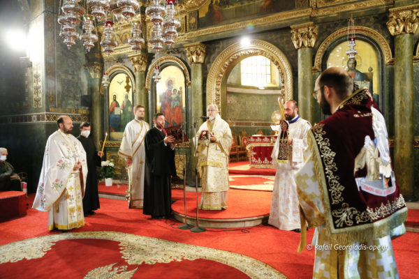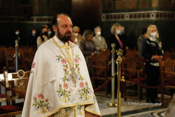 Τον Θεοφιλέστατο πλαισίωσαν οι ιερείς του Ναού: Αρχιμανδρίτης Ειρηναίος Βογιατζής, Πρωτοπρεσβύτερος Παλαιολόγος Μάνος, Πρωτοπ. Νικόλαος Ζουγκανάρου και ιεροδιάκονοι.