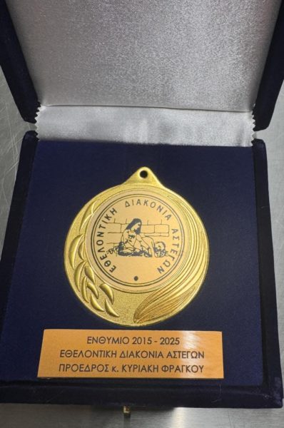 Ενώ τιμήθηκαν οι Εθελοντές Πέτρα Φράγκου, Βαρβάρα Σαρόγλου, Αστέριος Καραγεωργίου, με τιμητικές πλακέτες για την συνεχή προσφορά τους και Ενθύμια Μετάλλια δόθηκαν σε όλους τους Εθελοντές.