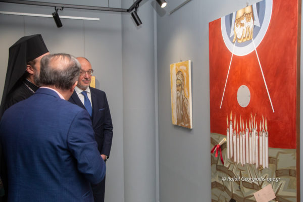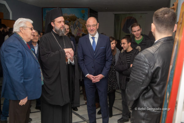 Κατά την επίσκεψή του στη Θεολογική Σχολή ο Μητροπολίτης Θεσσαλονίκης ξεναγήθηκε από τον Κοσμήτορα της Σχολής σε έκθεση αγιογραφίας με δημιουργίες φοιτητών και φοιτητριών.