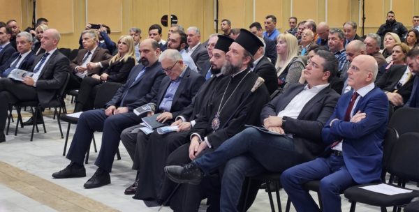 Ευχόμενος καλή επιτυχία σε όλες τις συνεδριάσεις και σε όλους τους εισηγητές, ο Παναγιώτατος Μητροπολίτης κ. Φιλόθεος κήρυξε την έναρξη της ημερίδας που διοργάνωσε το απόγευμα της Παρασκευής 19 Ιανουαρίου 2024 η «Βεργίνα Τηλεόραση» με θέμα «Η Τοπική Αυτοδιοίκηση μπροστά στις σύγχρονες προκλήσεις της κλιματικής αλλαγής – Πολιτική Προστασία και Ενεργειακά ζητήματα» στο συνεδριακό κέντρο «Ιωάννης Βελλίδης».