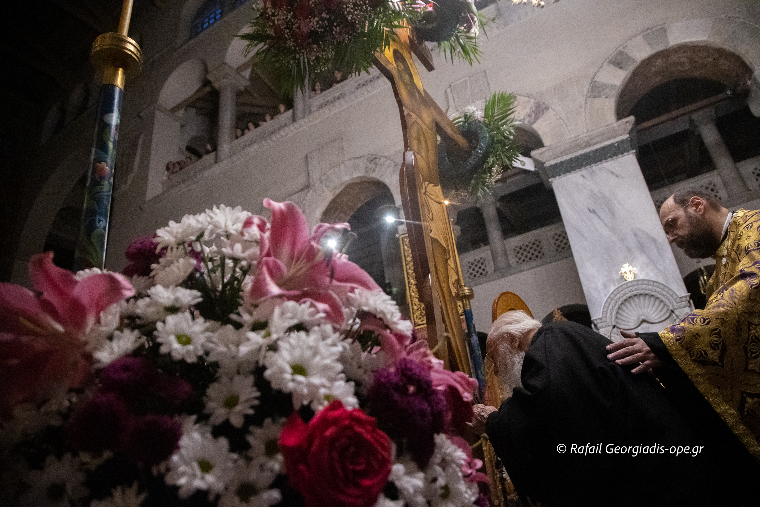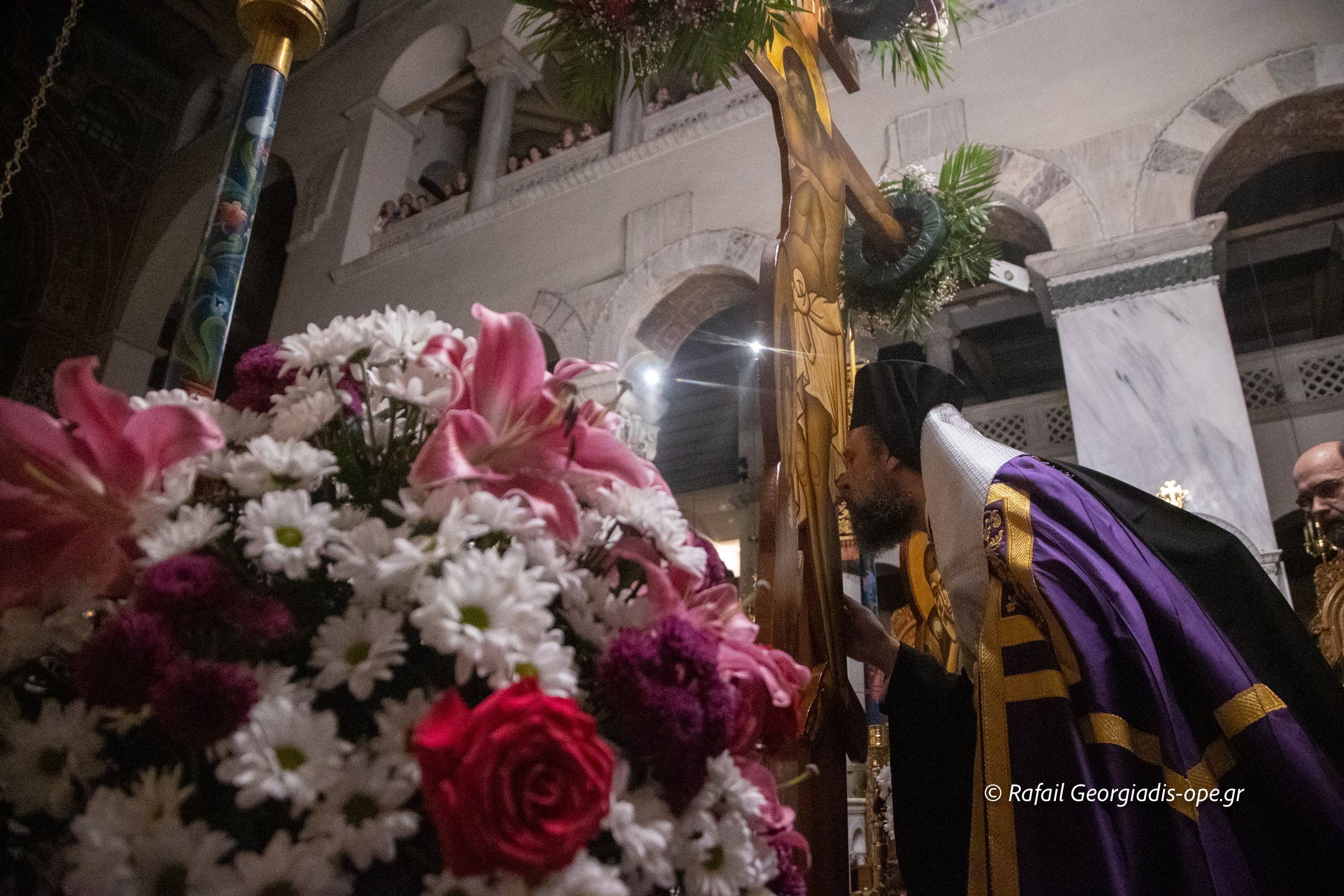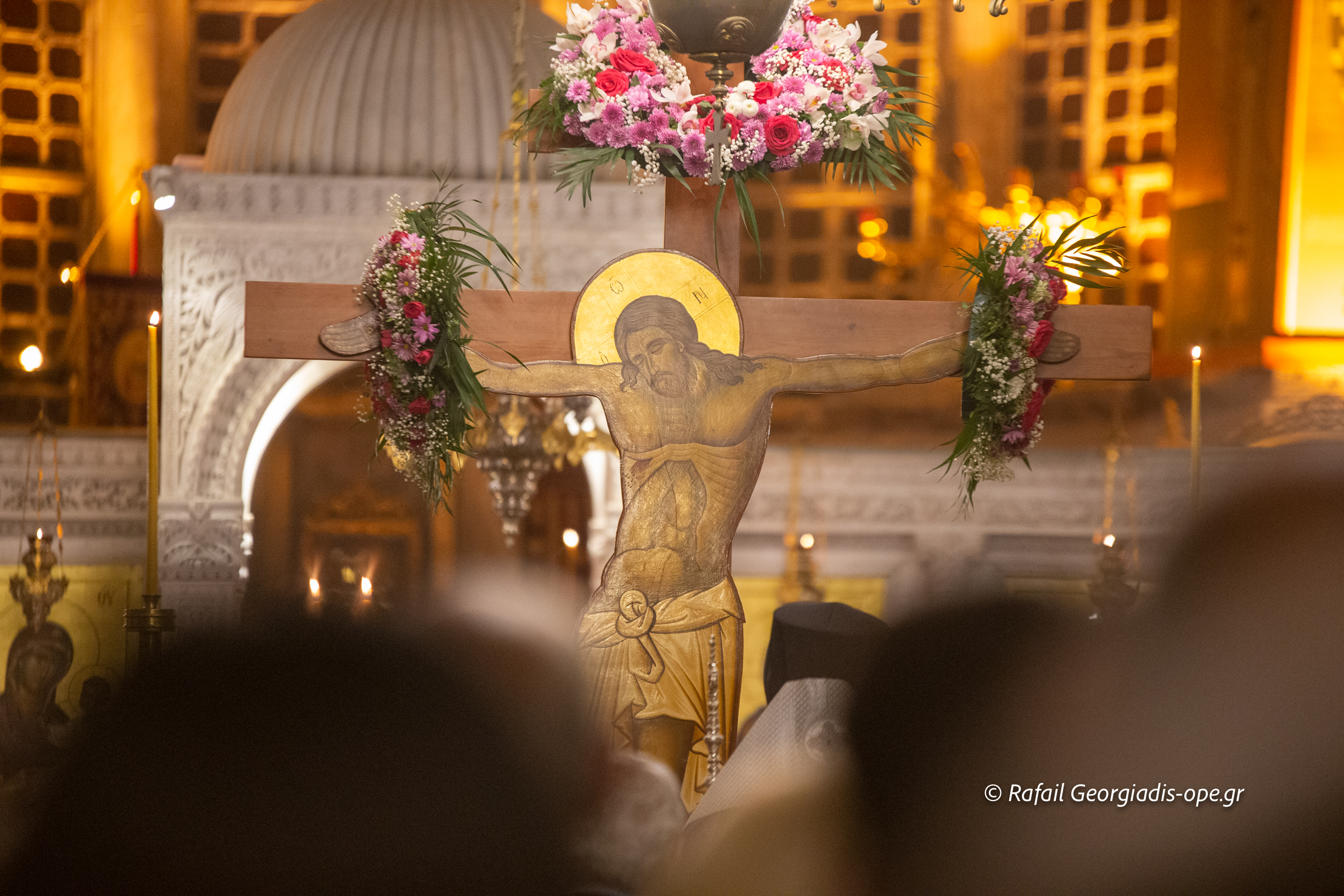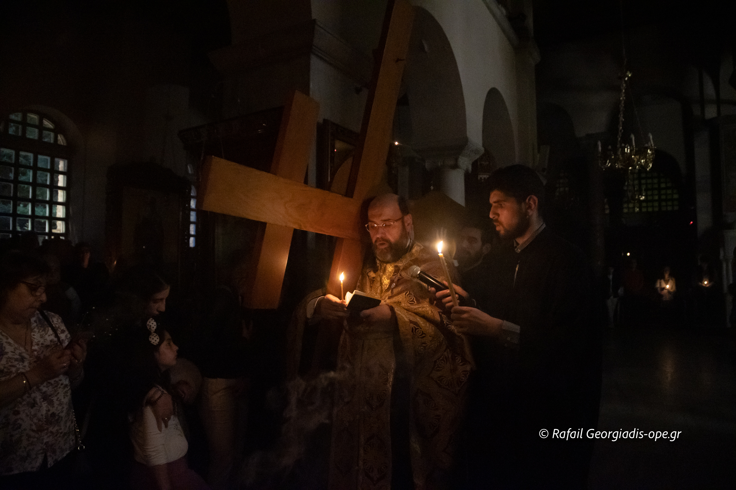 Πίστοί κάθε ηλικίας με λουλούδια και αναμμένα κεριά στα χέρια προσήλθαν να προσκυνήσουν τον Εσταυρωμένο κύριο που οδηγήθηκε στο εκούσιο πάθος για τη σωτηρία των ανθρώπων.Φανερά συγκινημένοι Έψαλαν και προσεύχονταν εναποθέτοντας στον Σταυρό του Κυρίου τις σκέψεις τους και τους λογισμούς τους.