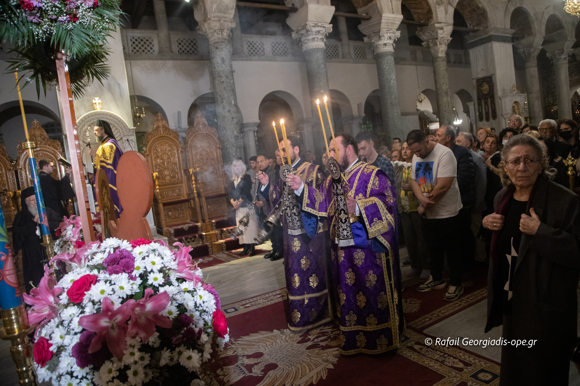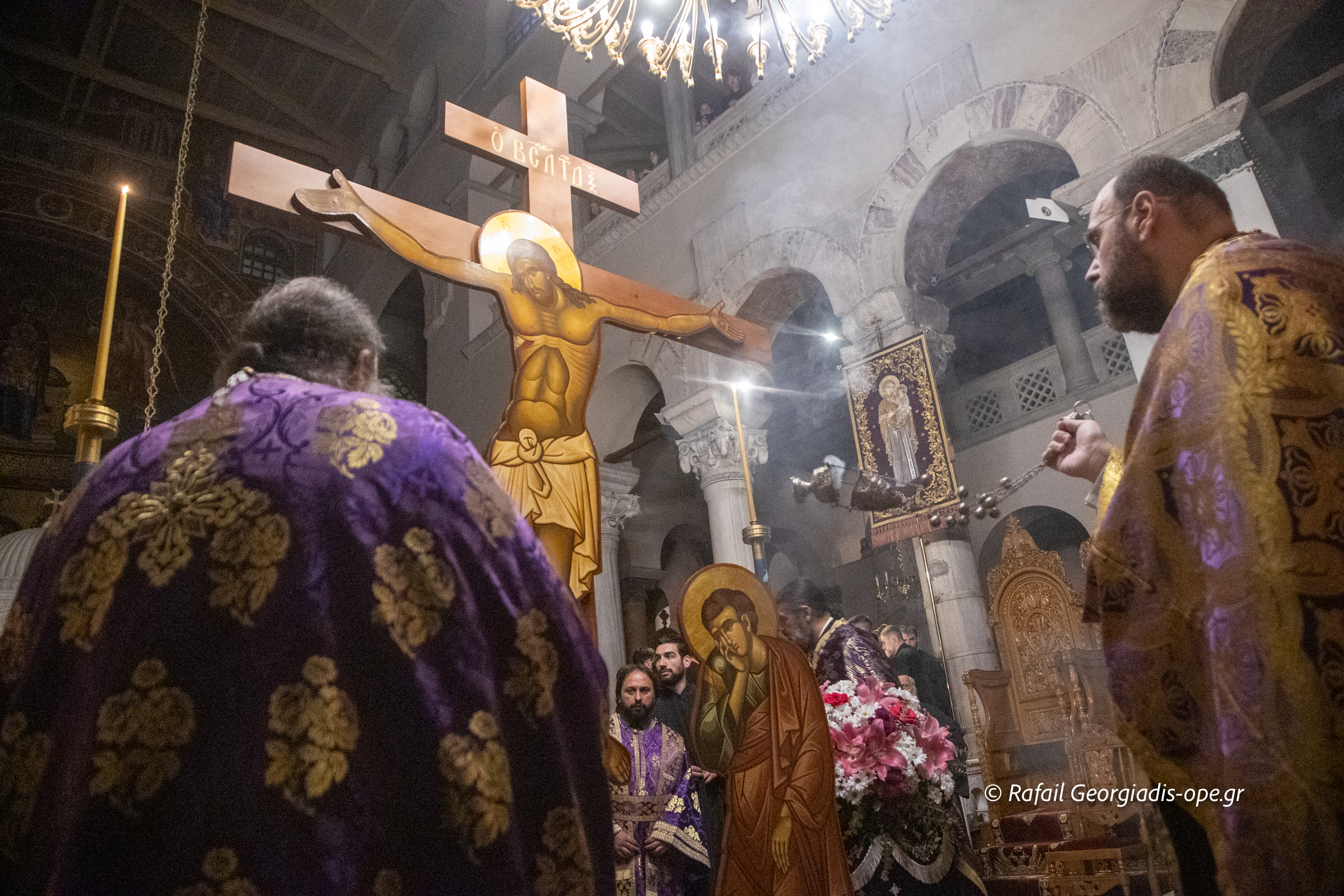 Μέσα σε ένα ιδιαίτερο κλίμα κατάνυξης αλλά και συγκίνησης, συμμετείχε στην Ακολουθία των Αχράντων Παθών και της Σταυρώσεως του Κυρίου ο Παναγιώτατος Μητροπολίτης Θεσσαλονίκης κ. Φιλόθεος στον Ιερό Ναό Αγίου Δημητρίου Θεσσαλονίκης.