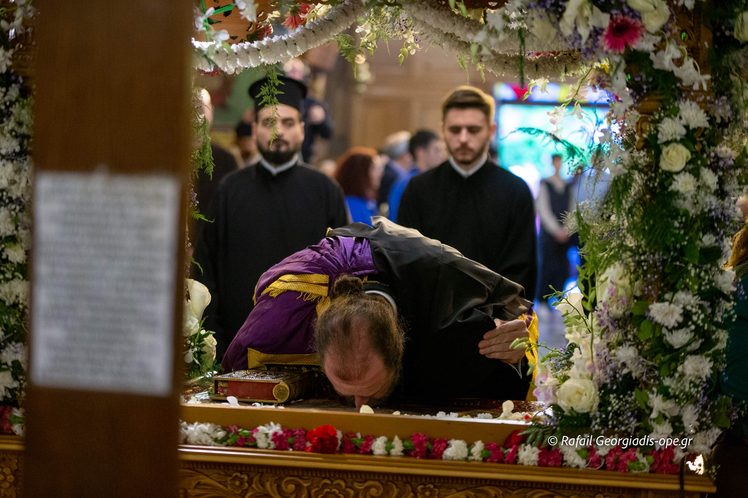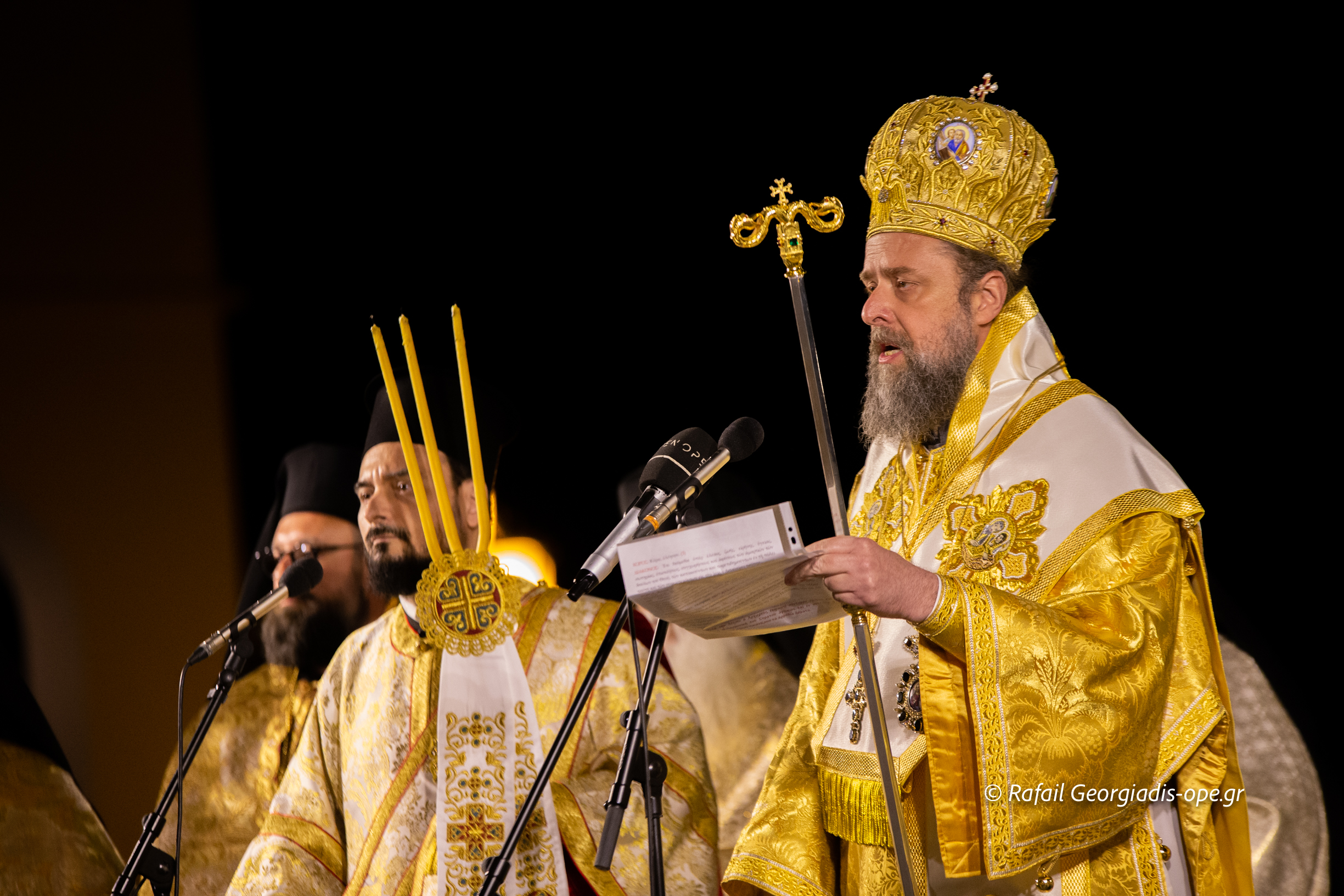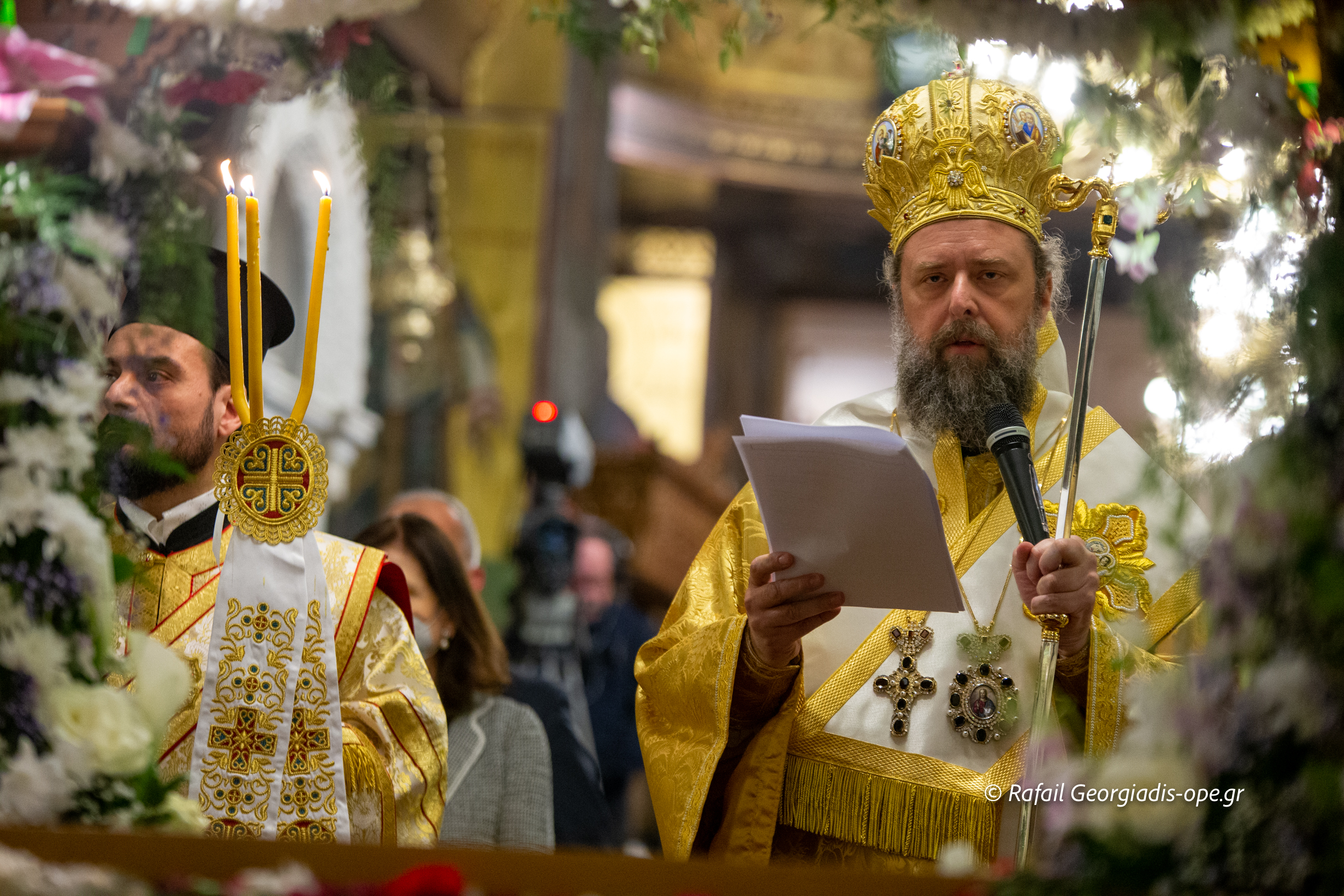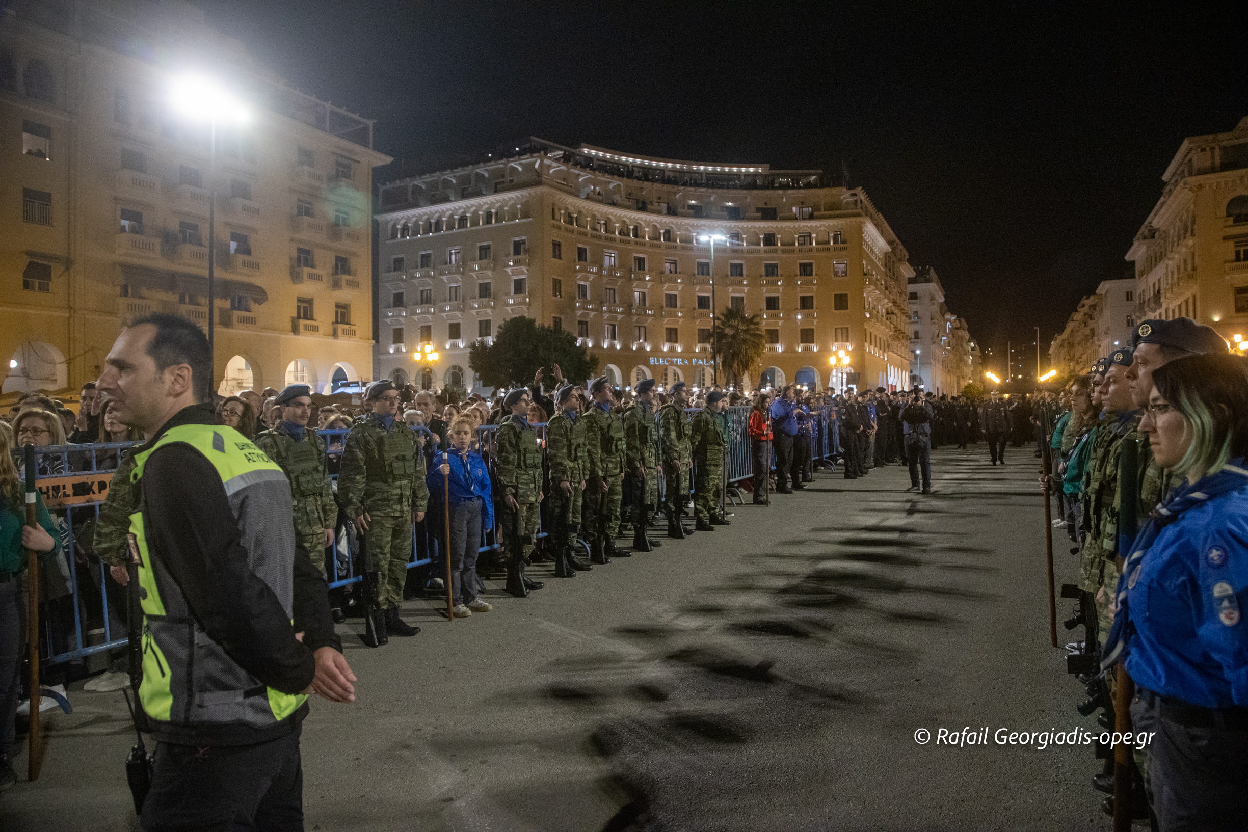 Νωρίτερα, ο Παναγιώτατος Μητροπολίτης Θεσσαλονίκης χοροστάτησε στον Μητροπολιτικό Ιερό Ναό του Αγίου Γρηγορίου του Παλαμά κατά την Ακολουθία του Όρθρου του Μεγάλου Σαββάτου και ακολούθησε η περιφορά του Επιταφίου, με την συνοδεία της Φιλαρμονικής του Στρατού και στρατιωτικού αγήματος, διά των οδών: Αγίας Σοφίας – Λεωφ. Νίκης – πλ. Αριστοτέλους, για την πραγματοποίηση της συναντήσεως των Επιταφίων.