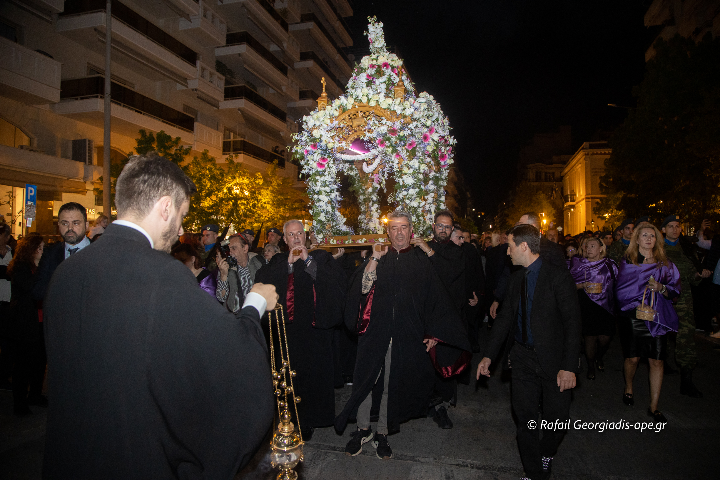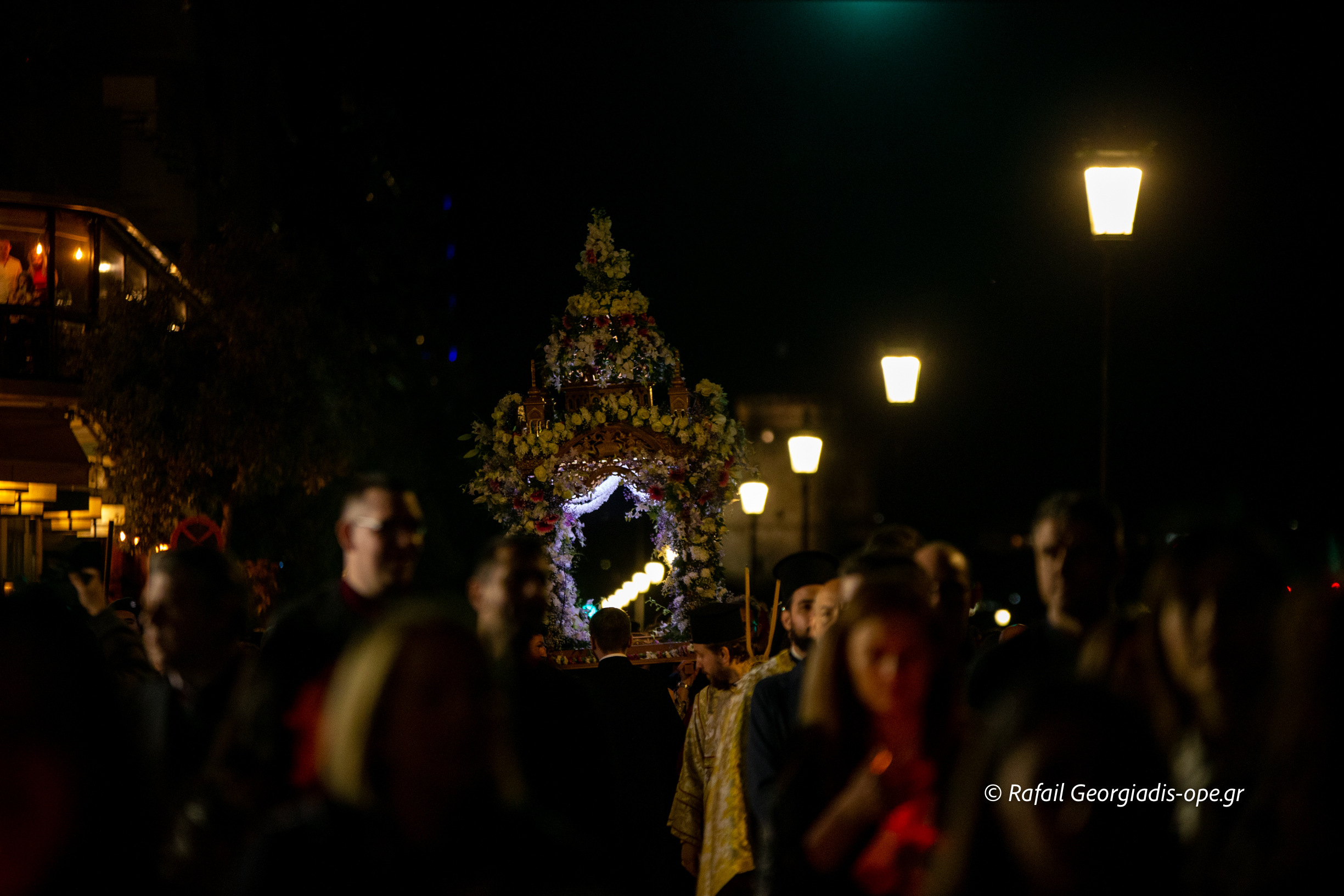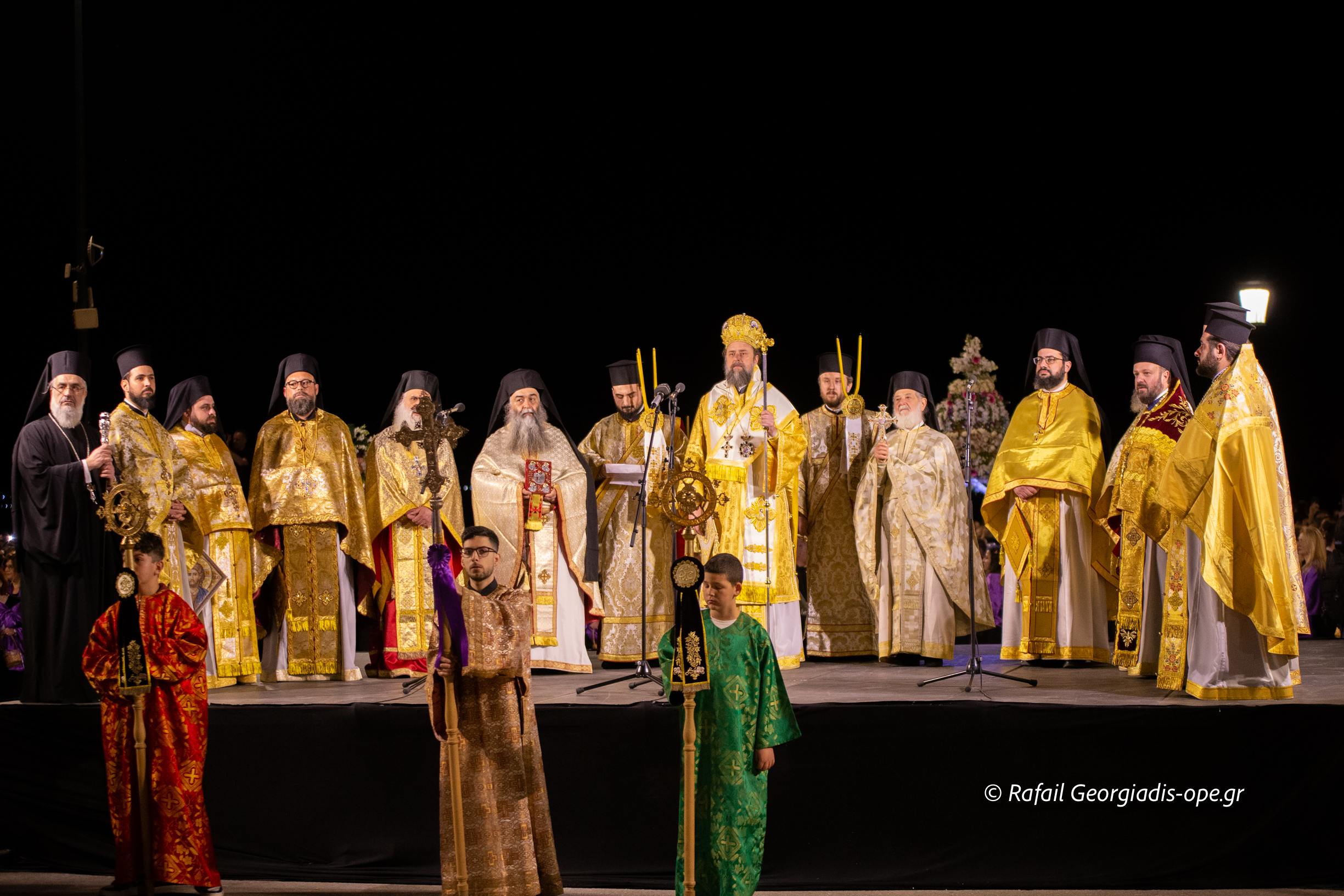 Στην κεντρική πλατεία της πόλης «συναντήθηκαν» οι επιτάφιοι από τον Καθεδρικό Ναό Της Του Θεού Σοφίας, από τον Μητροπολιτικό Ναό Αγίου Γρηγορίου του Παλαμά, από τον Ιερό Ναό της Παναγίας Χαλκέων, από την Ιερά Μονή Αγίας Θεοδώρας και από τον Ιερό Ναό Αγίου Νικολάου του Τρανού.