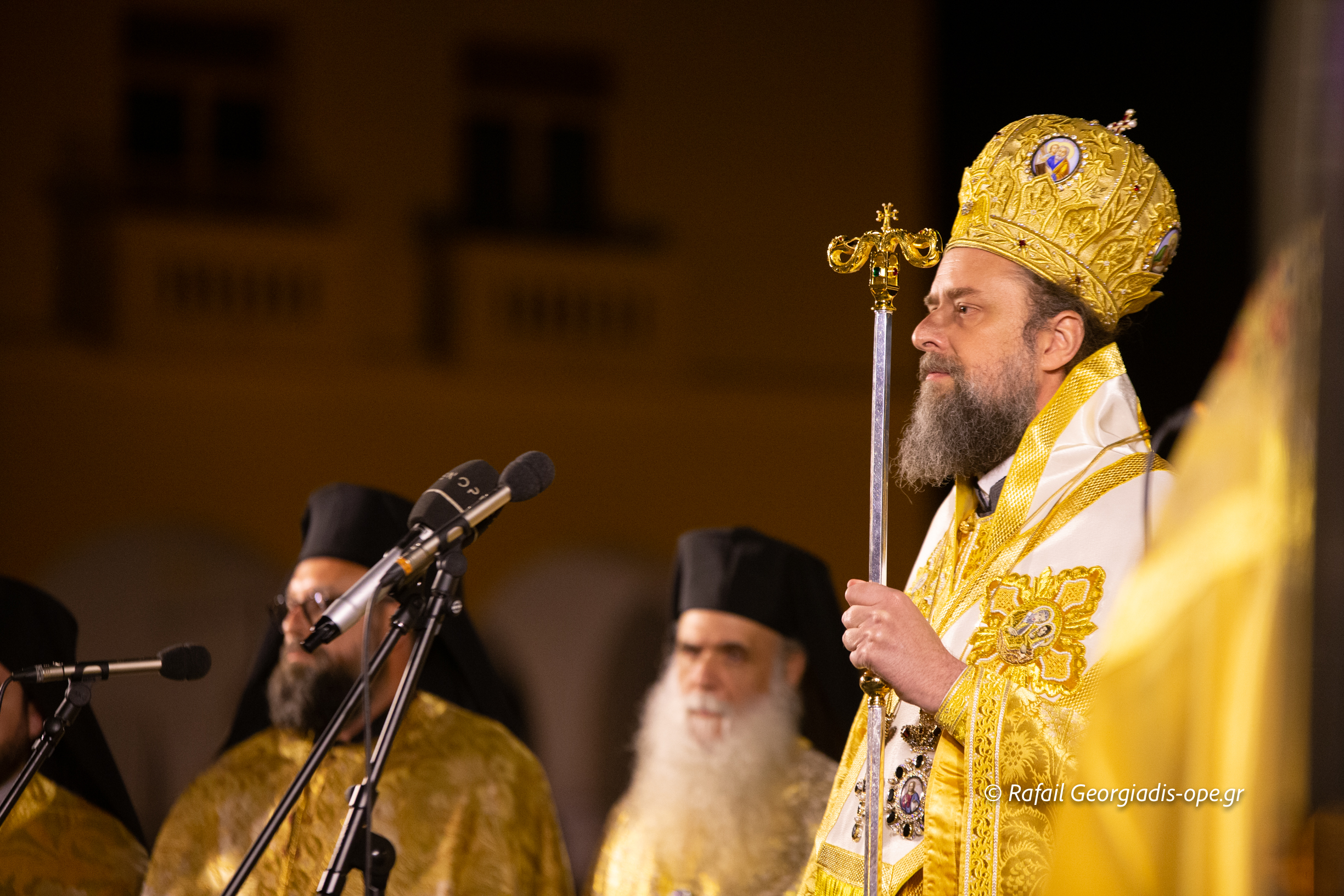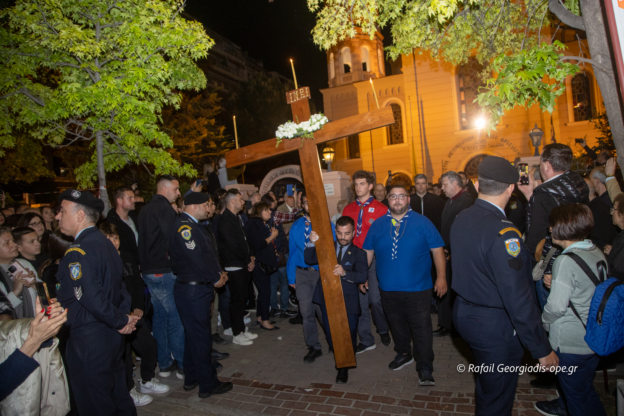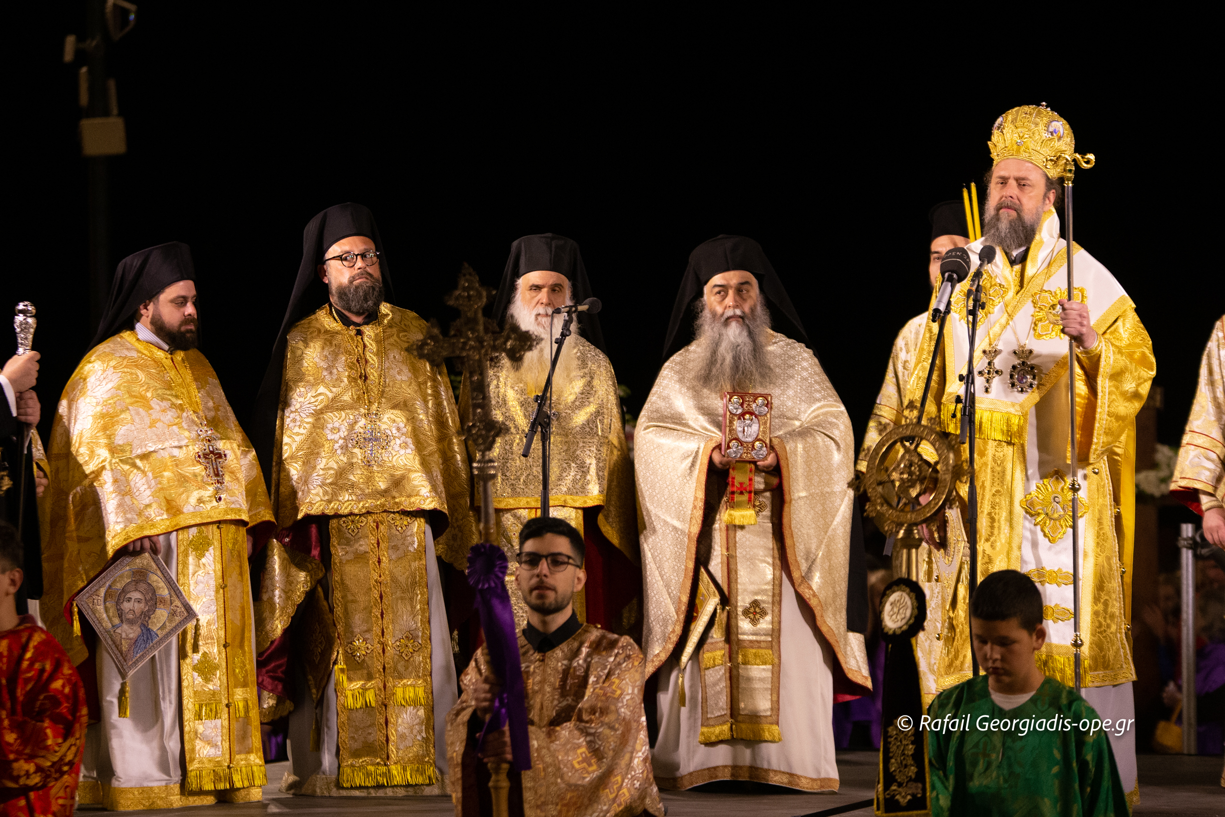 Στην κεντρική πλατεία της πόλης «συναντήθηκαν» οι επιτάφιοι από τον Καθεδρικό Ναό Της Του Θεού Σοφίας, από τον Μητροπολιτικό Ναό Αγίου Γρηγορίου του Παλαμά, από τον Ιερό Ναό της Παναγίας Χαλκέων, από την Ιερά Μονή Αγίας Θεοδώρας και από τον Ιερό Ναό Αγίου Νικολάου του Τρανού.