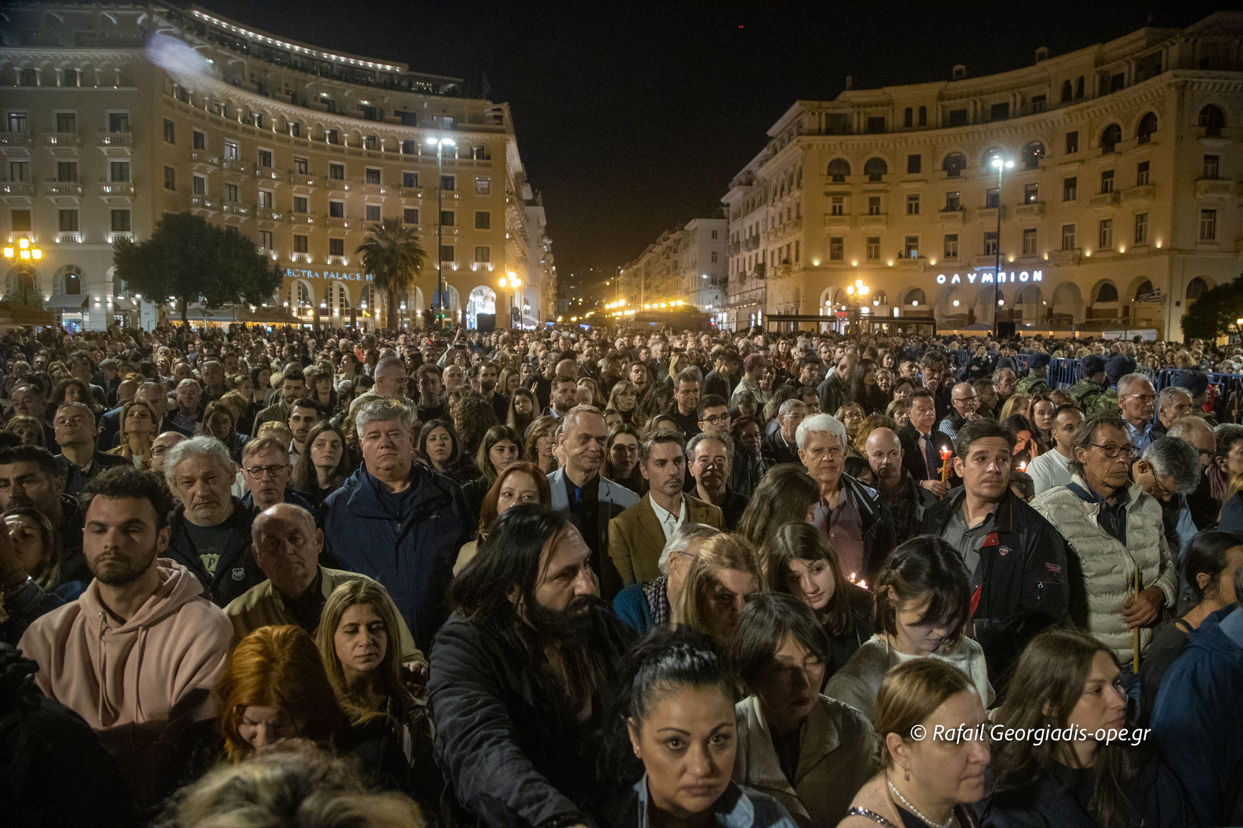 Μια ιδιαίτερη στιγμή επέλεξε ο Μητροπολίτης Θεσσαλονίκης, κ. Φιλόθεος, για να στείλει ακόμη ένα μήνυμα κατά της βίας. «Είναι τόσο σημαντική αυτή η συνάντηση, είναι σημαντικό ακόμη και το μέρος που επιλέχθηκε να γίνει. Δεν έχει περάσει πολύς καιρός που αυτή η πλατεία κατακλύστηκε από τη βία. Να, που σήμερα έρχεται αυτή η σύναξη με Εκείνον που είναι προεξάρχων, είναι ο Χριστός που είναι μέσα στον τάφο για να μας παρουσιάσει έναν Θεό που δεν έχει καμία σχέση με τη βία», ανέφερε ο Παναγιώτατος Μητροπολίτης Θεσσαλονίκης κ. Φιλόθεος κατά την συνάντηση των πέντε επιταφίων στην πλατεία Αριστοτέλους.
