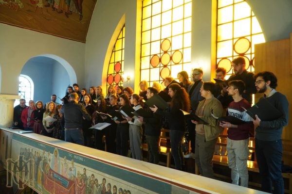Στη Θεία Λειτουργία έψαλε η Μικτή Χορωδία της Ενορίας «Φωνές», υπό την διεύθυνση του Καθηγητού της Θεολογικής Σχολής του ΑΠΘ κ. Χρυσοστόμου Σταμούλη.