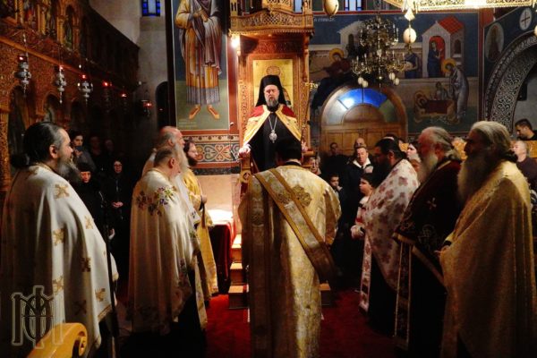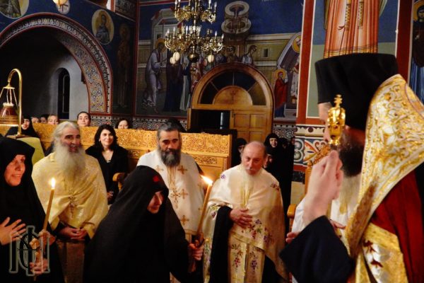 Ο Σεβασμιώτατος χοροστάστησε στην ακολουθία του Εσπερινού και ακολούθως τέλεσε την ακολουθία του Μεγάλου και Αγγελικού Σχήματος της αδελφής Ακυλίνας και εν συνεχεία τέλεσε την ακολουθία της ρασοευχής δοκίμου μοναχής της Ιεράς Μονής, η οποία και έλαβε το όνομα της Οσίας Θεοδώρας της εν Θεσσαλονίκη τη οποία και τιμά ιδιαιτέρως η Μητρόπολη.