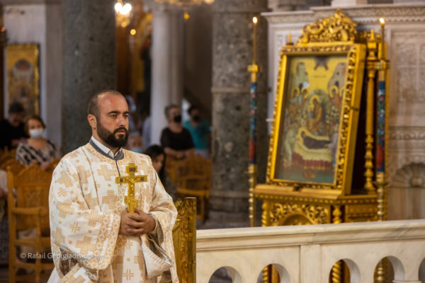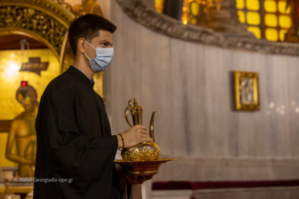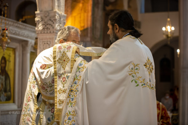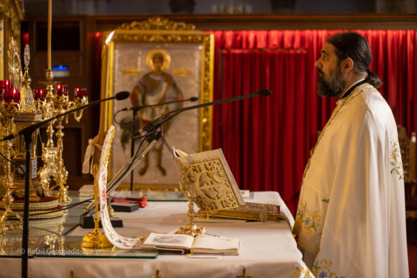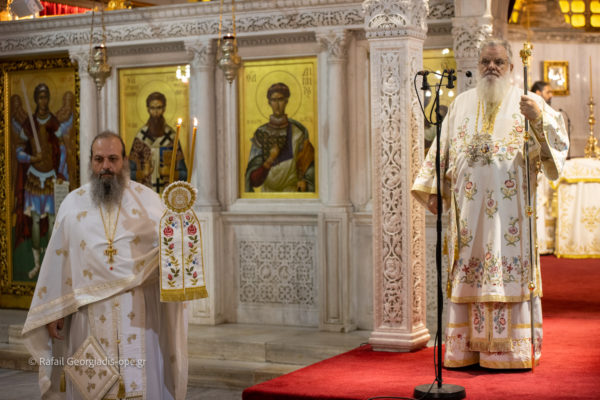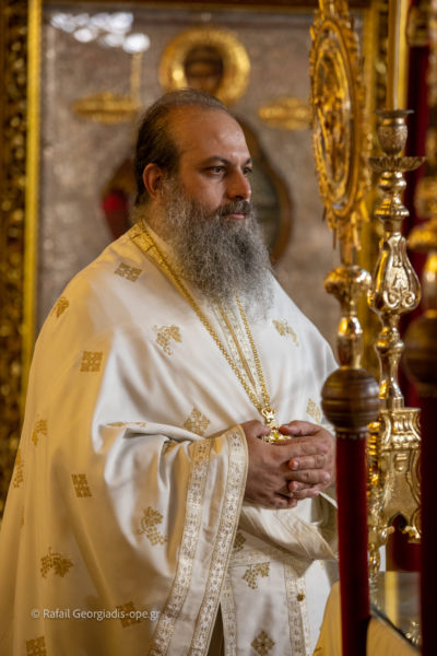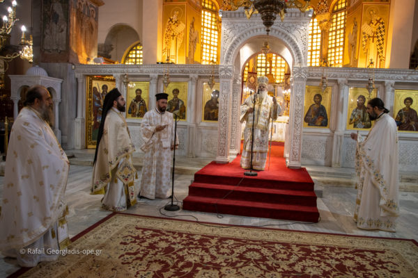 Τον Σεβασμιώτατο πλαισίωσαν ο Πανοσιολογιώτατος Αρχιμ Δημήτριος Τζιαφάς και οι ιερείς του Ι.Ν. Πρωτοπρεσβύτεροι π. Γεώργιος Θεοδωρής και π. Νικόλαος Χαμαμτζόγλου και ο ιεροδιάκονος Αλέξανδρος Νικολόγιου.