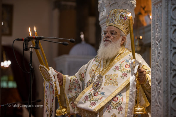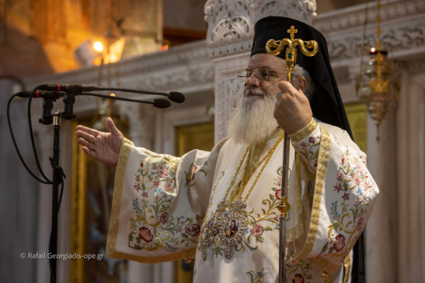 Ο Σεβασμιώτατος στο κήρυγμα του στάθηκε στην φράση που είπε ο Κύριος στους μαθητές του ««θαρσείτε… μη φοβείσθε», η φράση αυτή συνιστά το κλειδί για την αντιμετώπιση όλων των δυσκολιών της ζωής.
