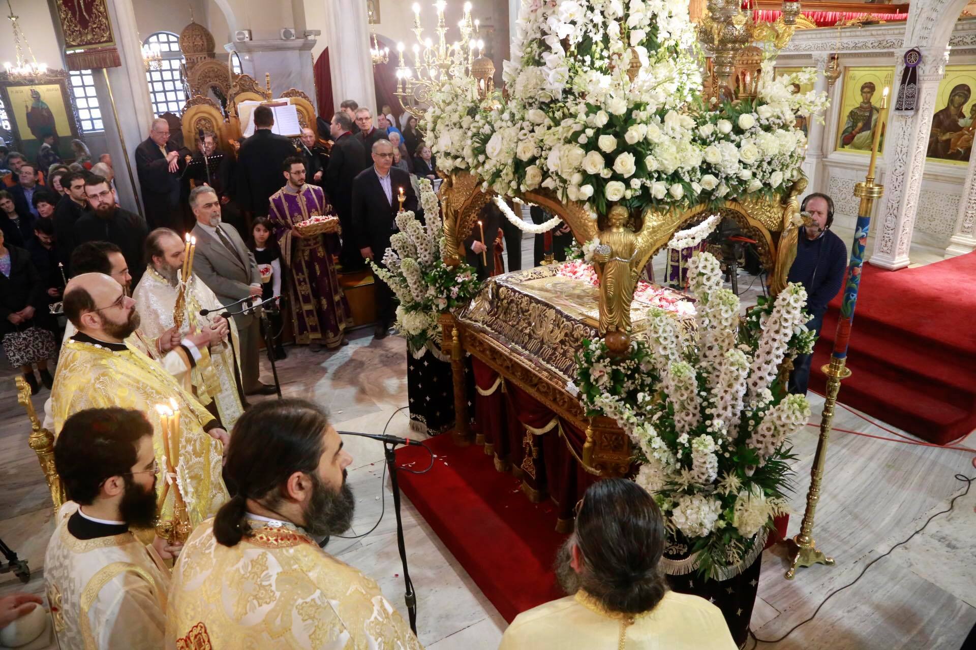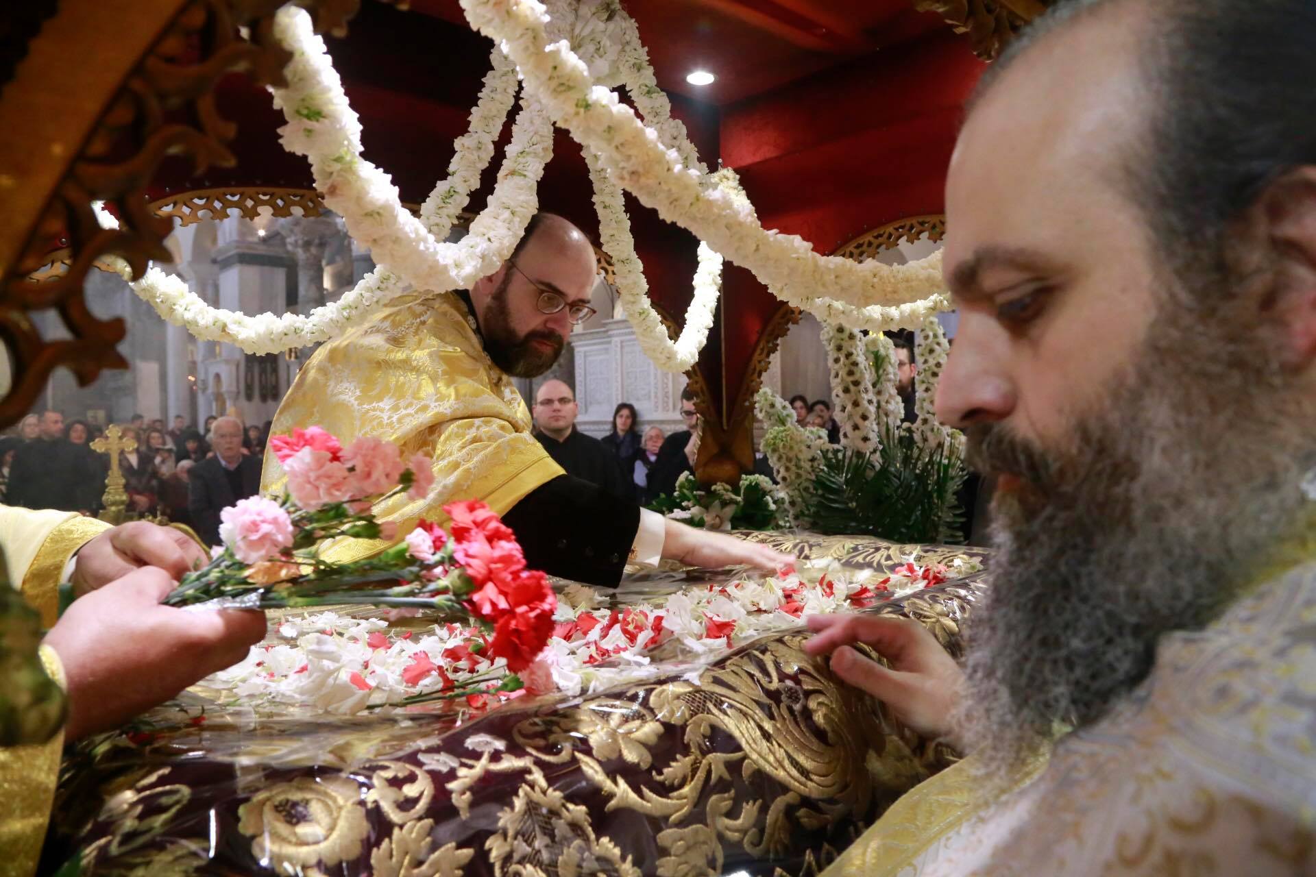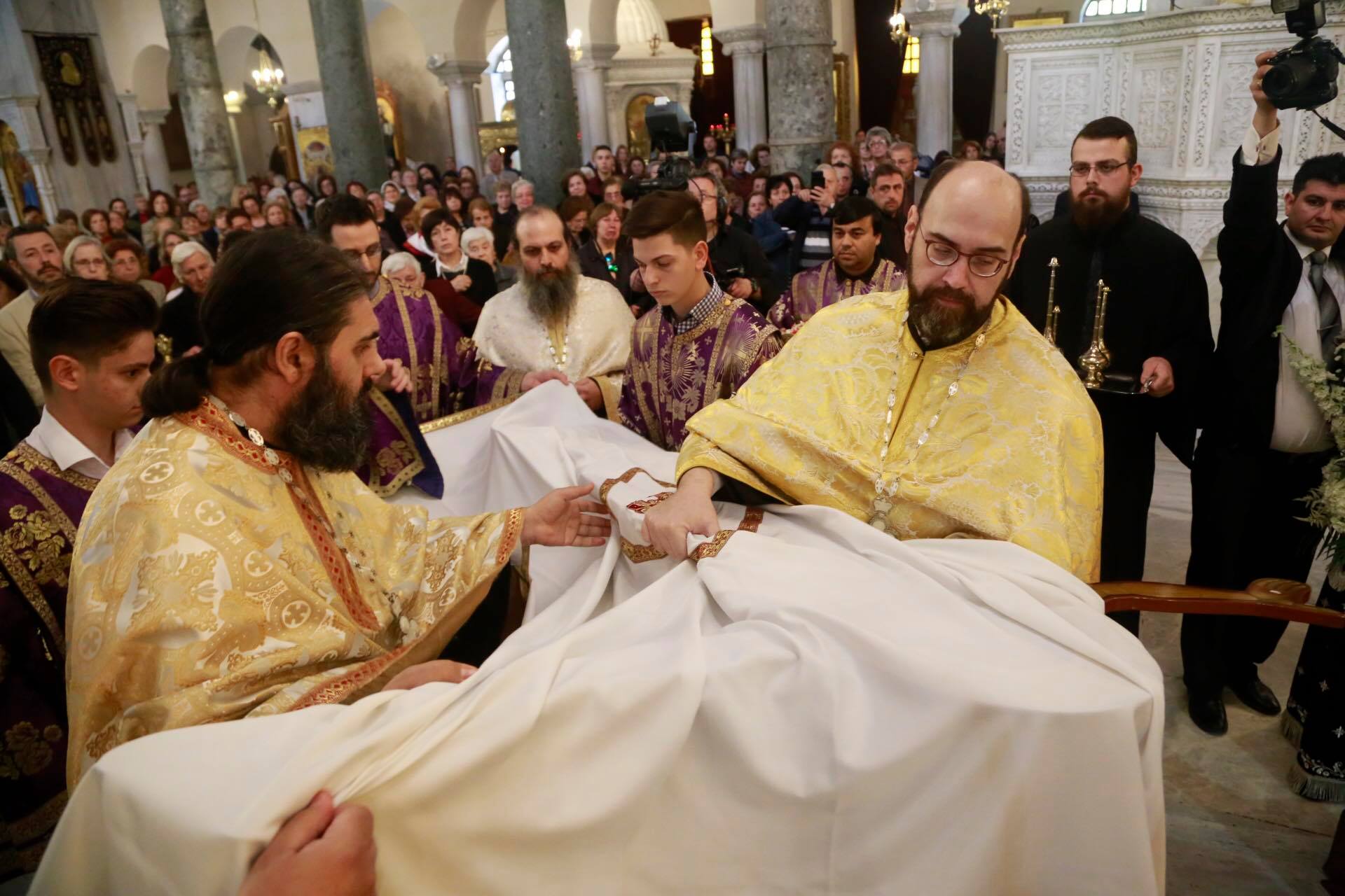 Την αποκαθήλωση πραγματοποίησε ο προϊστάμενος του Ι. Ν. αρχιμ. Δαμασκηνος Πέτικας μαζί με τους Διακόνους και τους Ιερείς του ναού.