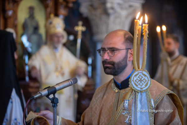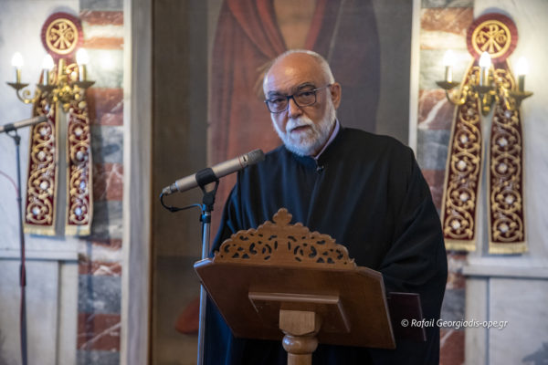 Στο τέλος της Θείας Λειτουργίας ο Γενικός Αρχιερατικός της Μητροπόλεως π. Φώτιος μετέφερε τις ευχές του Παναγιωτάτου.