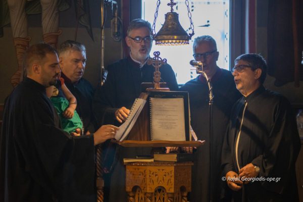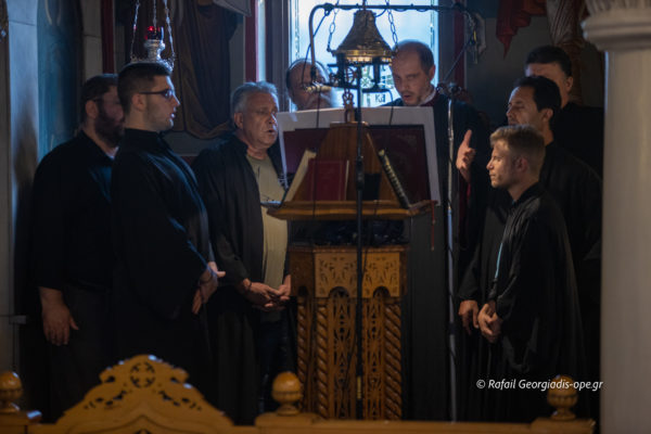 Τους ιερούς ύμνους απέδωσαν οι ιεροψάλτες του ναού κ. Βασίλειος Βασιλείου Πρωτοψάλτης και ο κ. Λουκάς Κασσιάρας Λαμπαδάριος.