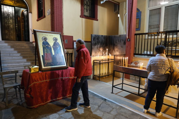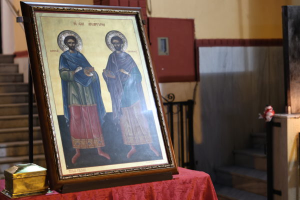 Πολλοί πιστοί προσέτρεξαν στους θεραπευτές αγίους, για να προσκυνήσουν την ιερά εικόνα και τα λείψανα τους, προσευχόμενοι για το πολύτιμο αγαθό της υγείας.