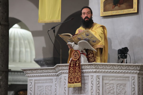 Τον θείο λόγο κήρυξε ο Μητροπολίτης Φθιώτιδος κ. Συμεών. Κατά το κήρυγμά του ο Σεβασμιώτατος αναφέρθηκε στην βιοτή του Αγίου Δημητρίου τιμά σήμερα η Θεσσαλονίκη, η Μακεδονία και τα Βαλκάνια, καθώς ο Άγιος είναι αυτός ο οποίος χωρίς διακρίσεις, ενώνει άπαντες. Ιδιαίτερα στάθηκε στην παρουσία των νέων κατά την εορτή του Αγίου Δημητρίου, οι οποίοι προσέρχονται στο ναό για να προσκυνήσουν τα ιερά λείψανα και να αντλήσουν δύναμη και ελπίδα.