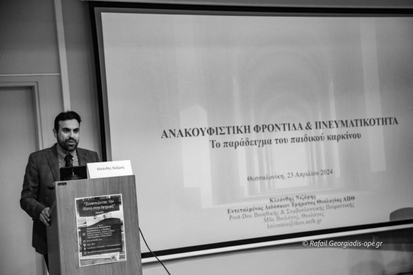 γ) Κλεάνθης Νιζάμης, Εντεταλμένος Διδάσκων του Τμήματος Θεολογίας του Α.Π.Θ., Post-Doc Βιοηθικής & Συμβουλευτικής Ποιμαντικής, MSc Βιολόγος, Θεολόγος “Ανακουφιστική Φροντίδα & Πνευματικότητα. Το παράδειγμα του παιδικού καρκίνου.”