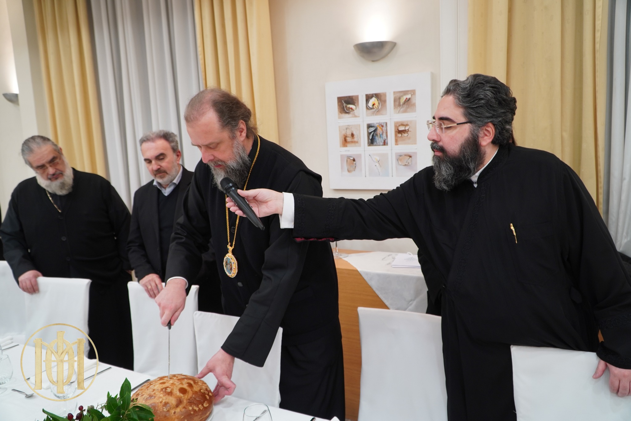 Μετά το τέλος της σύναξης, ο Ποιμενάρχης μας, ευλόγησε την βασιλόπιτα και ακολούθησε εόρτια τράπεζα με μουσικοχορευτικό πρόγραμμα.