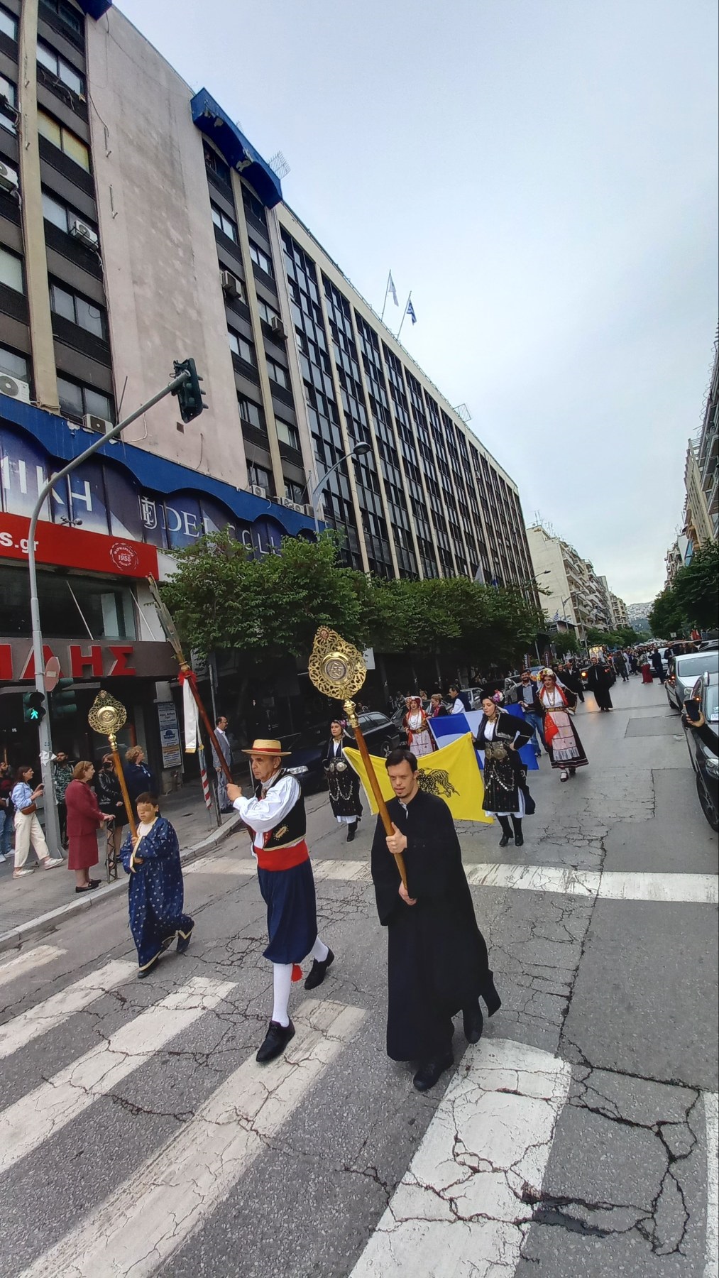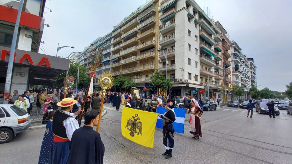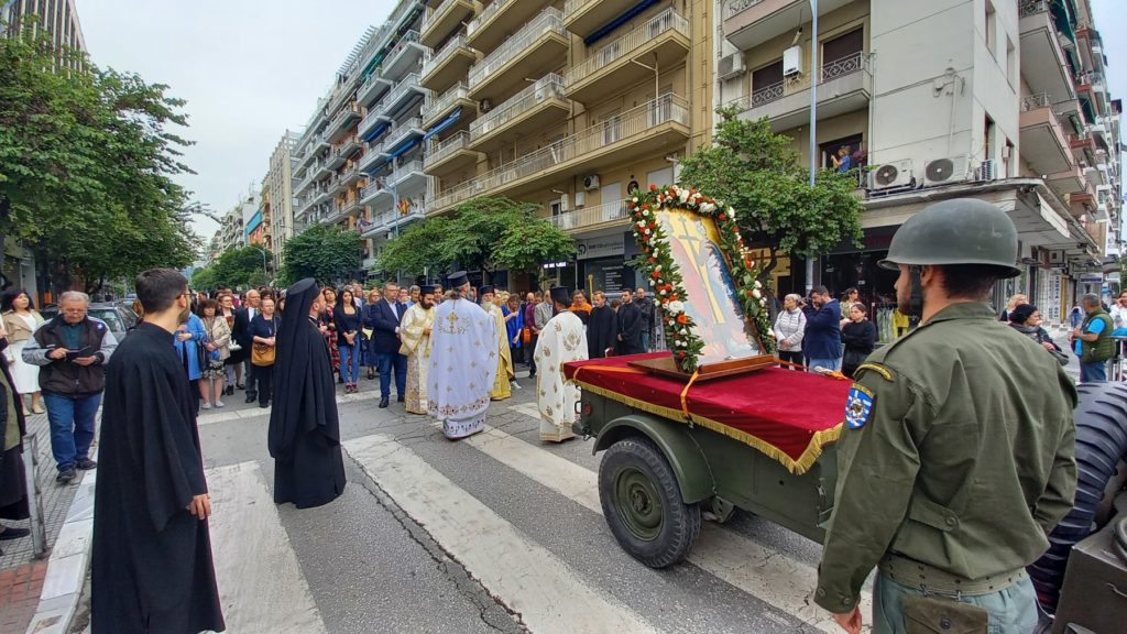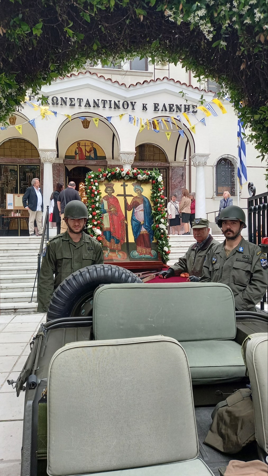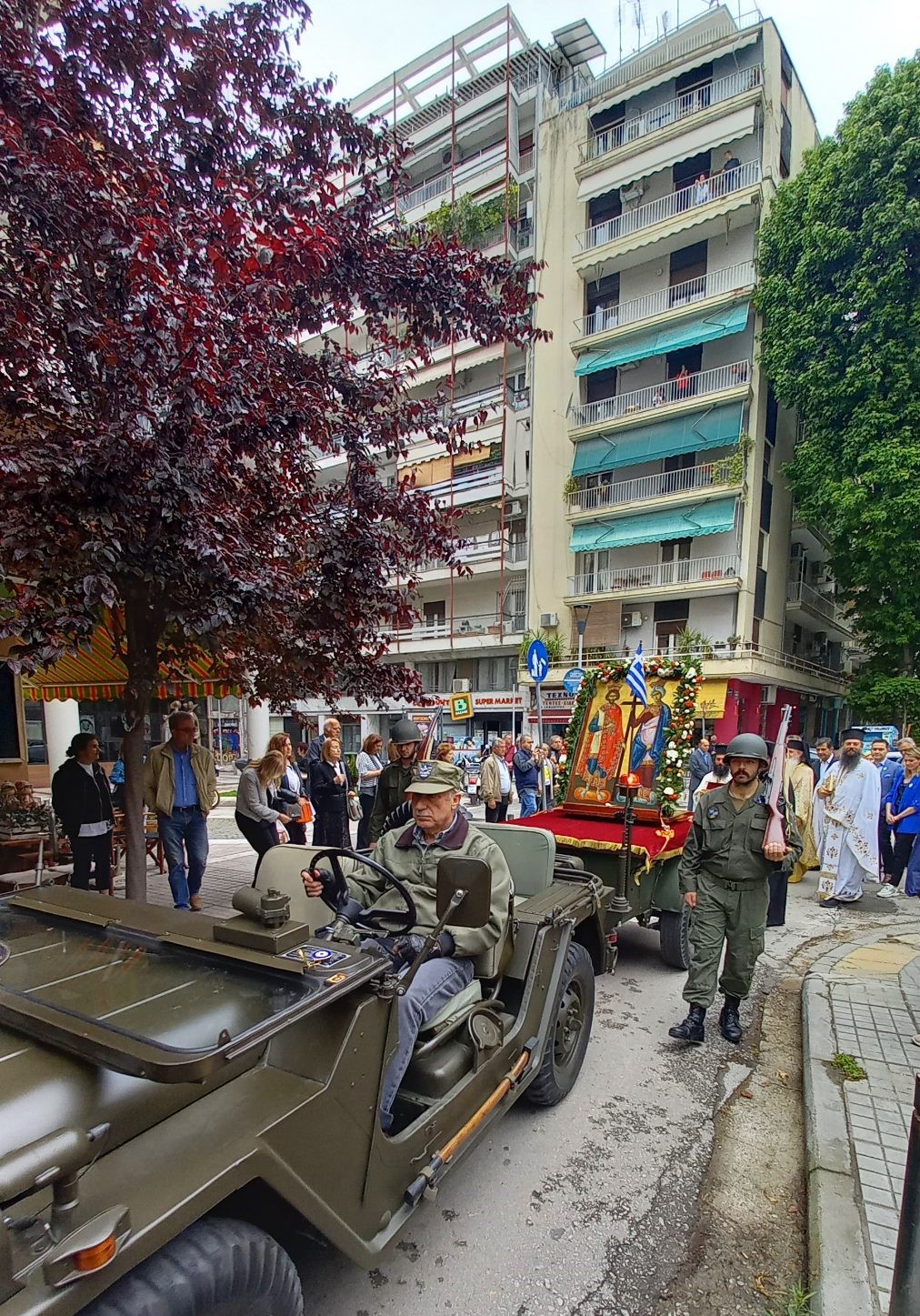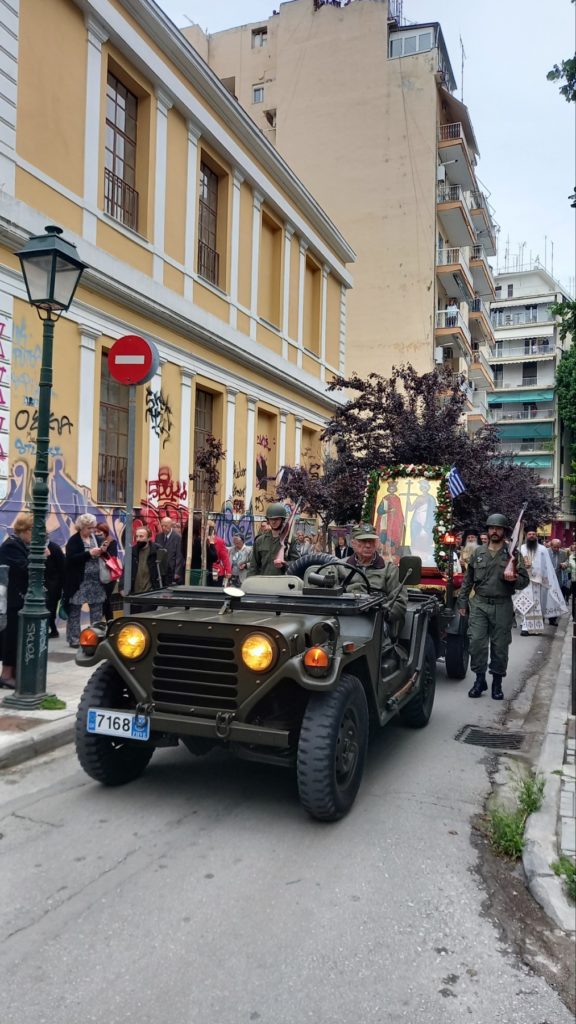 Την κυριώνυμο ημέρα, με τελετάρχη τον προϊστάμενο του Ιερού Ναού Αρχιμανδρίτη π. Χριστοφόρο Λιόλιο, ακολούθησε η Περιφορά της Ιεράς Εικόνος των Αγίων Ισαποστόλων Κωνσταντίνου και Ελένης με τη συμμετοχή της μπάντας της Ελληνικής Αστυνομίας, του Συλλόγου Ιστορικών Στρατιωτικών Οχημάτων, του Λυκείου Ελληνίδων και της Κερκυραϊκής Ένωσης Θεσσαλονίκης “Ο Άγιος Σπυρίδων” καθώς την 21η Μαΐου τιμάται και η Ένωση των Επτανήσων με την Ελλάδα.
