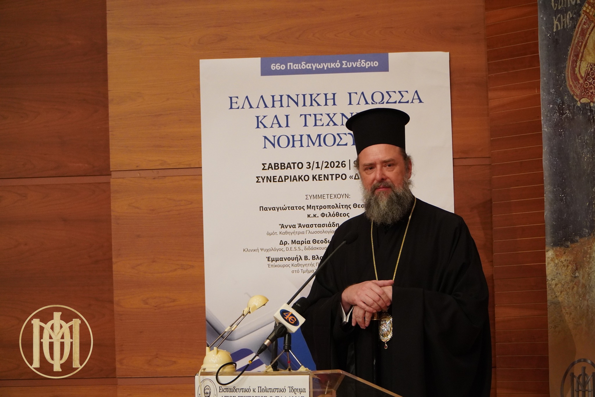 Το πρωί της 3ης Ιανουαρίου 2026 στους φιλόξενους χώρους του Εκπαιδευτικού και Πολιτιστικού Ιδρύματος (ΕΚ.Π.Ι.) της Ιεράς Μητροπόλεως Θεσσαλονίκης πραγματοποιήθηκε το 66ο Παιδαγωγικό Συνέδριο με θέμα: “Ελληνική Γλώσσα και Τεχνητή Νοημοσύνη”. Το Συνέδριο διοργάνωσε ο Τομέας Επιστημών του Συλλόγου Ορθοδόξου Ιεραποστολικής Δράσεως «Ο ΜΕΓΑΣ ΒΑΣΙΛΕΙΟΣ».