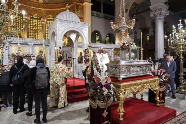 Μετά το πέρας της Θείας Λειτουργίας θα πραγματοποιηθεί η λιτάνευση των ιερών λειψάνων του Αγίου και της Θαυματουργού Εικόνας της Παναγίας Φανερωμένης από τη Νέα Αρτάκη Ευβοίας η οποία βρίσκεται στη συμπρωτεύουσα για να συνεορτάσει μετά του θαυματουργού Αγίου.