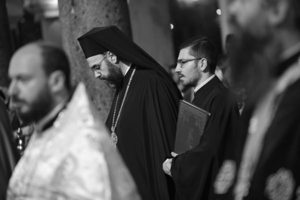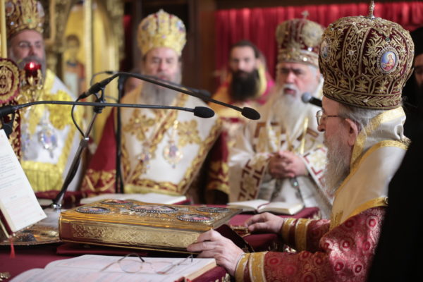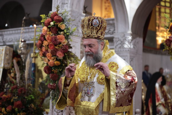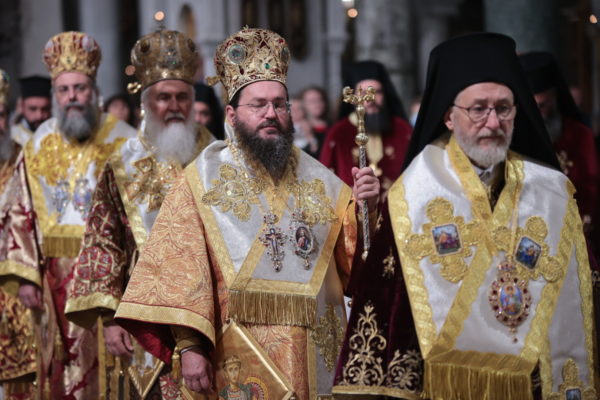 Στη συνέχεια τελέστηκε Πολυαρχιερατικό Συλλείτουργο προεξάρχοντος του Παναγιωτάτου Μητροπολίτη Θεσσαλονίκης κ. Ανθίμου τον οποίο πλαισίωνε ο Εκπρόσωπος της Ιεράς Συνόδου της Εκκλησίας της Ελλάδος, Μητροπολίτης Νεαπόλεως και Σταυρουπόλεως κ. Βαρνάβας. Συλλειτούργησαν οι Σεβασμιώτατοι Μητροπολίτες Μετρών και Αθύρων κ. Δημήτριος, εκ του Οικουμενικού Πατριαρχείου, Ιερισσού, Αγίου Όρους και Αρδαμερίου κ. Θεόκλητος, Γρεβενών κ. Δαβίδ, Τρίκκης, Γαρδικίου και Πύλης κ. Χρυσόστομος, Φιλίππων, Νεαπόλεως και Θάσου κ. Στέφανος, Λήμνου και Αγίου Ευστρατίου κ. Ιερόθεος, Λαγκαδά, Λητής και Ρεντίνης κ. Πλάτων, Πολυανής και Κιλκισίου κ. Βαρθολομαίος, Θήρας Αμοργού και Νήσων κ. Αμφιλόχιος και ο Θεοφιλέστατος Επίσκοπος Αμορίου κ. Νικηφόρος, Καθηγούμενος της Ιεράς Μονής Βλατάδων.