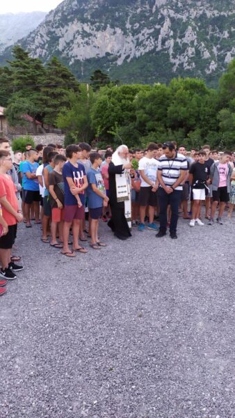 Ο Σεβασμιώτατος ευχήθηκε στα 130 αγόρια που θα μείνουν στην Κατασκήνωση μέχρι την 3η Αυγούστου, καθώς και στα στελέχη καλή διαμονή.