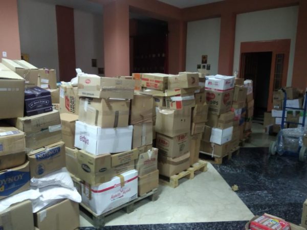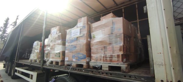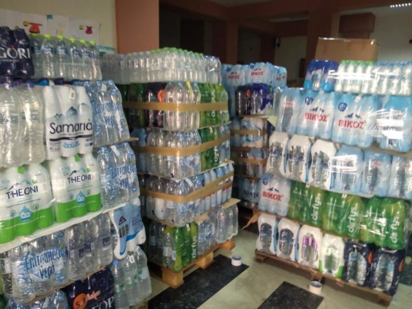 Παραδόθηκαν παλέτες με νερά, ζυμαρικά, όσπρια, γάλατα, λάδι, καθαριστικά και είδη προσωπικής υγιεινής.