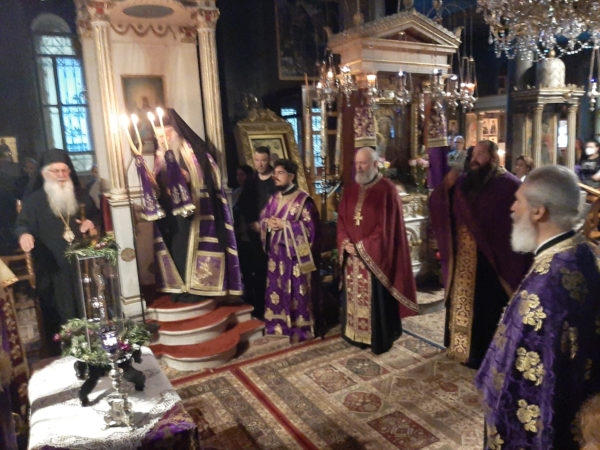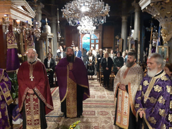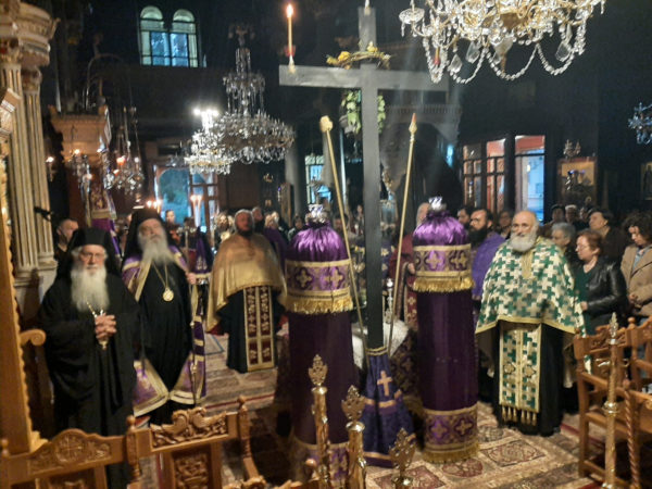 Προ της απολύσεως ο Σεβασμιώτατος Μητροπολίτης κ. Γεώργιος αναφέρθηκε στο ιερό σύμβολο του Τιμίου Σταυρού τον οποίο προβάλει η Εκκλησία εν μέσω της Αγίας Τεσσαρακοστής.