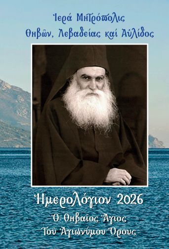 Εξεδόθη και κυκλοφορεί το Εγκόλπιο Ημερολόγιο έτους 2026 της Ιεράς Μητροπόλεως Θηβών, Λεβαδείας και Αυλίδος, το οποίο είναι αφιερωμένο στον συντοπίτη μας και νέο Άγιο της Εκκλησίας μας, Όσιο Εφραίμ τον Κατουνακιώτη.