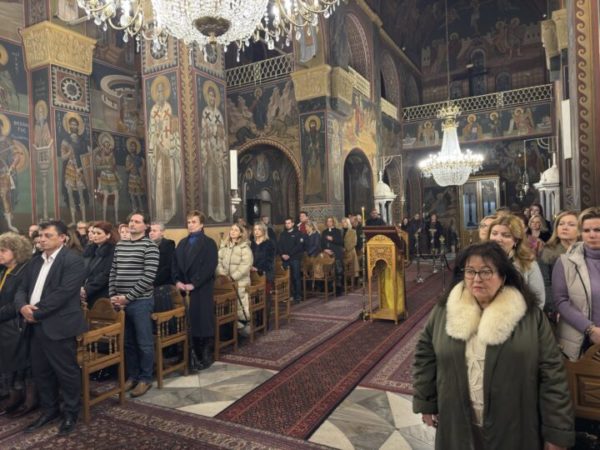 Στον Ιερό Μητροπολιτικό Ναό Εισοδίων της Θεοτόκου Λεβαδείας τελέστηκε ο πανηγυρικός Εσπερινός για τη μνήμη των Τριών Ιεραρχών χοροστατούντος του Σεβασμιωτάτου κ. Γεωργίου, με τη συμμετοχή της εκπαιδευτικής κοινότητας της επαρχίας, συγκεκριμένα συμμετείχαν εν ενεργείᾳ και συνταξιούχοι εκπαιδευτικοί της Πρωτοβάθμιας και Δευτεροβάθμιας Εκπαίδευσης, ο Αντιπεριφερειάρχης Π.Ε. Βοιωτίας κ. Γ. Ντασιώτης και η Διευθύντρια Πρωτοβάθμιας Εκπαίδευσης Βοιωτίας κ. Π. Χουλιάρα-Σιδερά.