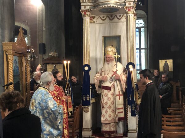 Την Παρασκευή 17 Ιανουαρίου 2020 ο Σεβασμιώτατος Ποιμενάρχης κ. Γεώργιος χοροστάτησε στον πανηγυρικό Εσπερινό στον Ιερό Ναό του Αγίου Αθανασίου Άρματος, με την συμμετοχή πολλυπληθούς εκκλησιάσματος. Το θείο λόγο κήρυξε ο πανοσ. αρχιμ. π. Βασίλειος Αθανασόπουλος. Μετά τον Εσπερινό ακολούθησε η λιτάνευση της εικόνος του Αγίου.