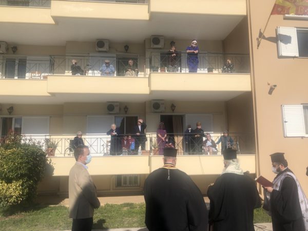 Κατόπιν ο Σεβασμιώτατος μετέβη στην Ενοριακή Στέγη Γερόντων-Μ.Φ.Η “Ο ΑΓΙΟΣ ΑΘΑΝΑΣΙΟΣ Ο ΜΕΓΑΣ” του Ιερού Ναού Αγίου Αθανασίου Πυρίου Θηβών, όπου, λόγω των αυστηρών μέτρων προστασίας που ισχύουν για τις κλειστές δομές και εκμεταλλευόμενος τον ηλιόλουστο καιρό, ευλόγησε τη βασιλόπιτα στην αυλή του Ιδρύματος, με τους τροφίμους και το προσωπικό να παρακολουθεί την τελετή από τα μπαλκόνια, δίνοντας έτσι χαρά στους γέροντες και στις γερόντισσες, που όλο αυτό τον καιρό της πανδημίας έχουν στερηθεί την δια ζώσης επικοινωνία με τους δικούς τους ανθρώπους.