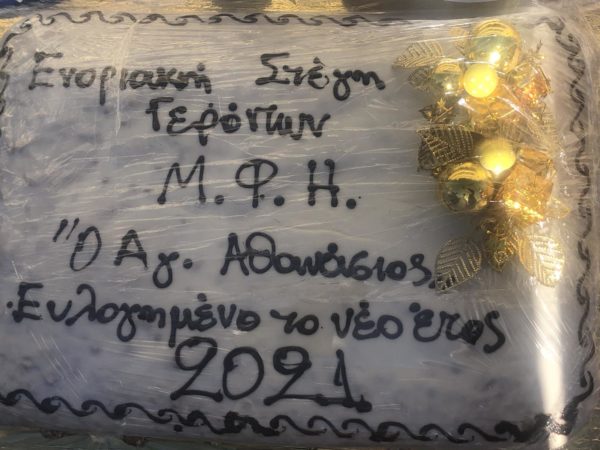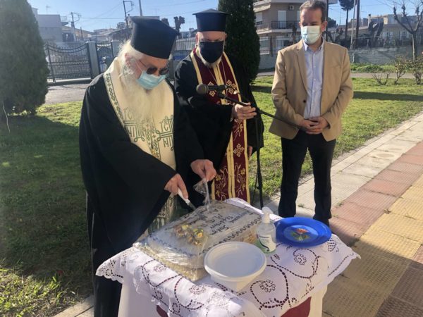 Κατόπιν ο Σεβασμιώτατος μετέβη στην Ενοριακή Στέγη Γερόντων-Μ.Φ.Η “Ο ΑΓΙΟΣ ΑΘΑΝΑΣΙΟΣ Ο ΜΕΓΑΣ” του Ιερού Ναού Αγίου Αθανασίου Πυρίου Θηβών, όπου, λόγω των αυστηρών μέτρων προστασίας που ισχύουν για τις κλειστές δομές και εκμεταλλευόμενος τον ηλιόλουστο καιρό, ευλόγησε τη βασιλόπιτα στην αυλή του Ιδρύματος, με τους τροφίμους και το προσωπικό να παρακολουθεί την τελετή από τα μπαλκόνια, δίνοντας έτσι χαρά στους γέροντες και στις γερόντισσες, που όλο αυτό τον καιρό της πανδημίας έχουν στερηθεί την δια ζώσης επικοινωνία με τους δικούς τους ανθρώπους.