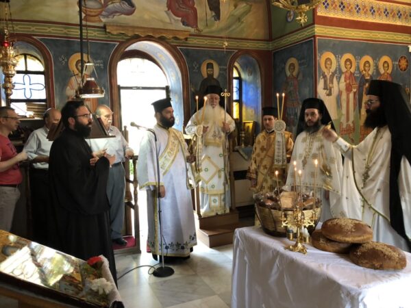 Μετά το τέλος της Θείας Λειτουργίας ο Σεβασμιώτατος στον προαύλιο χώρο του Ιερού Παρεκκλησίου του Αγίου Βλασίου πρόσφερε σε όλους τους παρισταμένους κέρασμα, ευχαριστώντας τους εγκάρδια για την αγάπη τους.