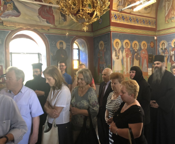 Συμπροσευχόμενοι στην ευχαριστήρια Θεία Λειτουργία ενώνοντας τις προσευχές τους με τον Σεβασμιώτατο, πνευματικά παιδιά του Σεβασμιωτάτου, συνεργάτες, κληρικοί και λαϊκοί, οι οποίοι εξέφρασαν τον σεβασμό και την αγάπη τους προς τον Σεβασμιώτατο, στον οποίο ευχήθηκαν υγεία, δύναμη στην πολυεύθυνη διακονία του και πολυετή ποιμαντορία.