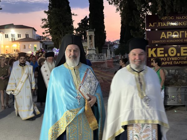 Το απόγευμα της Πέμπτης 25 Ιουλίου 2024, παραμονή της εορτής της Αγίας Παρασκευής, ο Σεβασμιώτατος Μητροπολίτης Θηβών, Λεβαδείας και Αυλίδος κ. Γεώργιος χοροστάτησε στον πανηγυρικό Εσπερινό στον Ιερό Ναό της Αγίας Παρασκευής Λεβαδείας με τη συμμετοχή των αρχών και πολυπληθούς εκκλησιάσματος. Το θείο λόγο κήρυξε ο πανοσ. αρχιμ. π. Αλέξιος Σαμαρτζής. Μετά τον Εσπερινό πραγματοποιήθηκε η λιτάνευση της εικόνας της Αγίας.