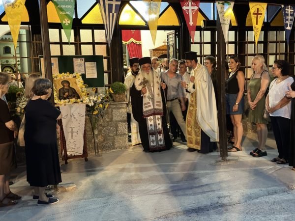 Το απόγευμα της Παρασκευής 26 Ιουλίου 2024, παραμονή της εορτής του Αγίου Παντελεήμονος, ο Σεβασμιώτατος χοροστάτησε στον Εσπερινό στον Ιερό Ναό Αγίου Παντελεήμονος Καπαρελλίου. Το θείο λόγο κήρυξε ο Ηγούμενος της Ι. Μονής Αγ. Γεωργίου Μαυρομματίου και Ιεροκήρυκας της Μητροπόλεως πανοσ. αρχιμ. π. Σιλουανός Πεπονάκης. Μετά το τέλος του Εσπερινού ακολούθησε η λιτάνευση της εικόνας του Αγίου με την συμμετοχή των αρχών κι όλων των κατοίκων του χωριού.